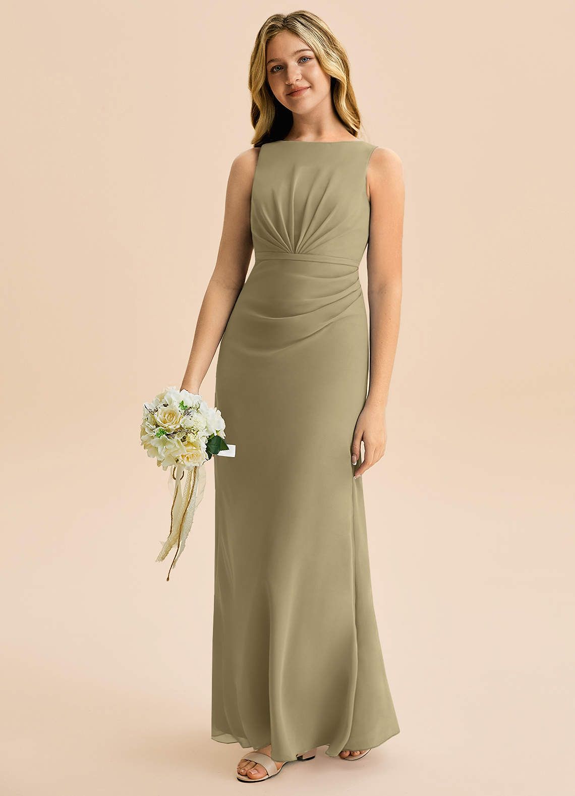 Robe Trapèze en Mousseline de soie Plissée Vert Mousse