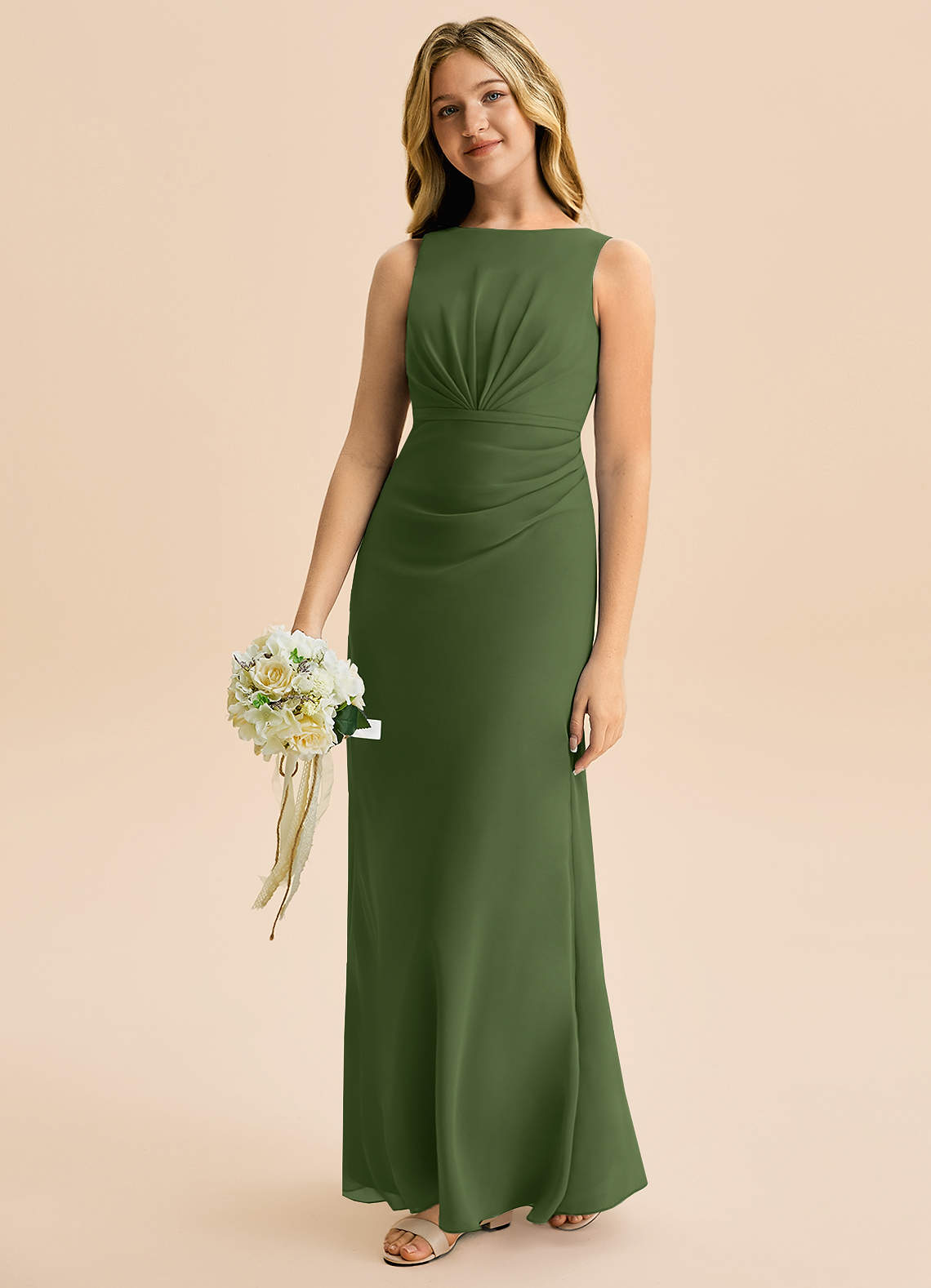 Robe Trapèze en Mousseline de soie Plissée Olive