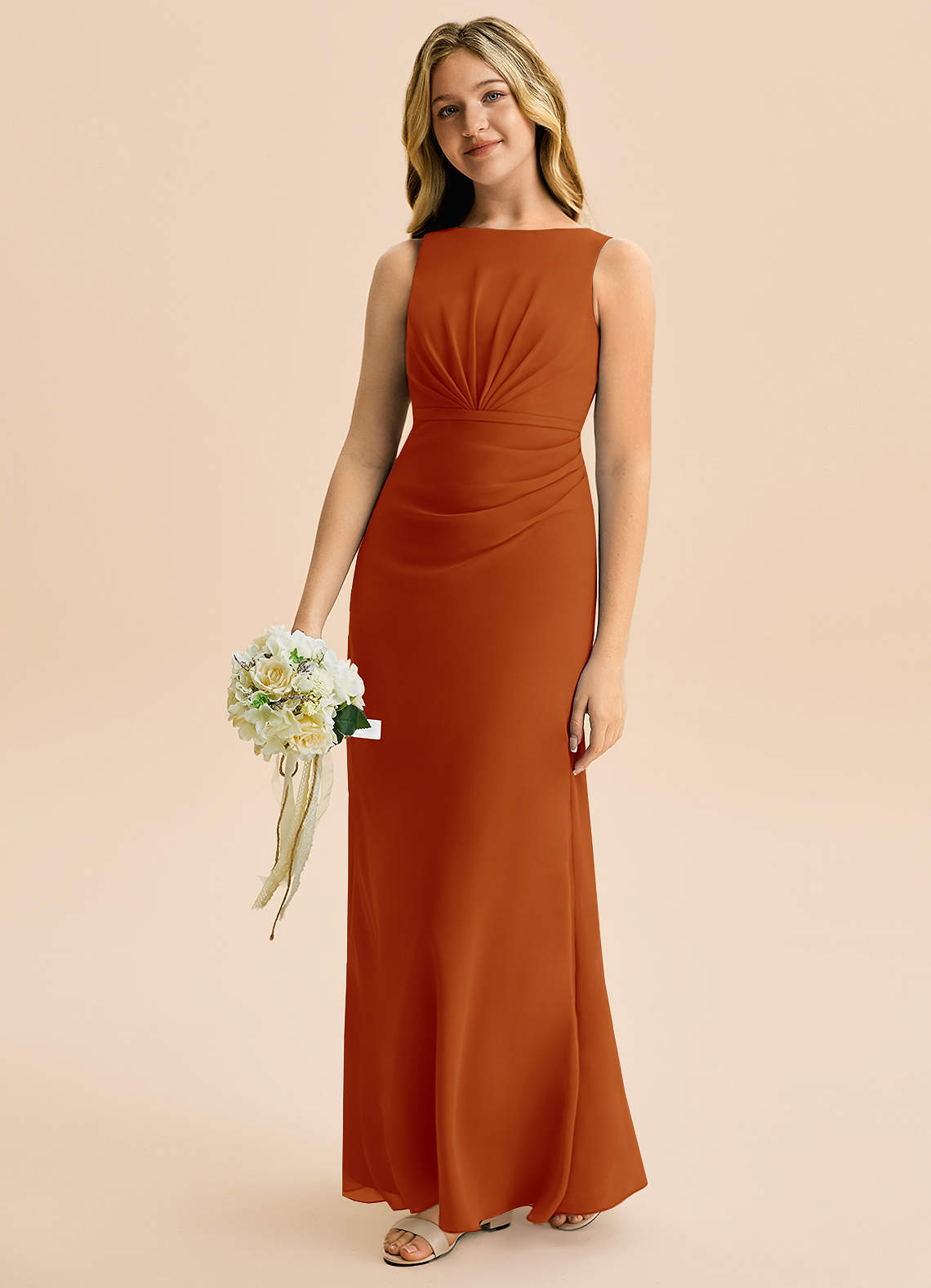Robe Trapèze en Mousseline de soie Plissée Paprika