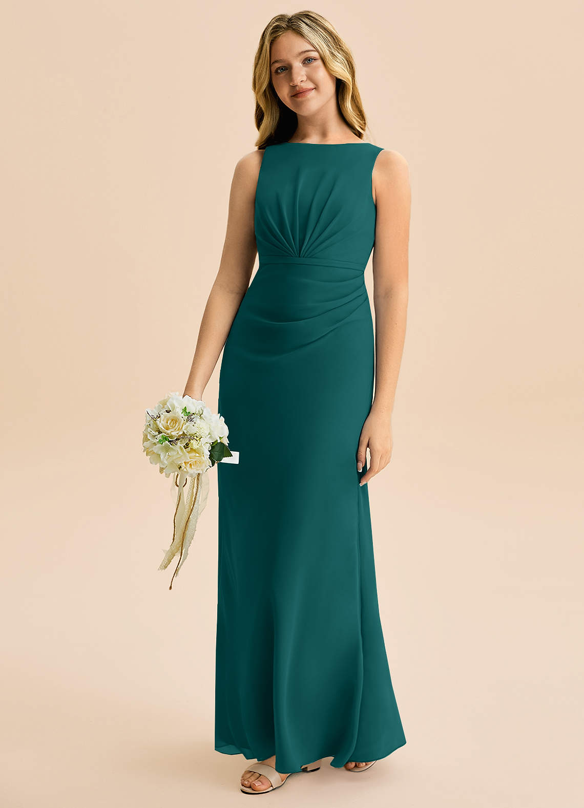 Robe Trapèze en Mousseline de soie Plissée Paon