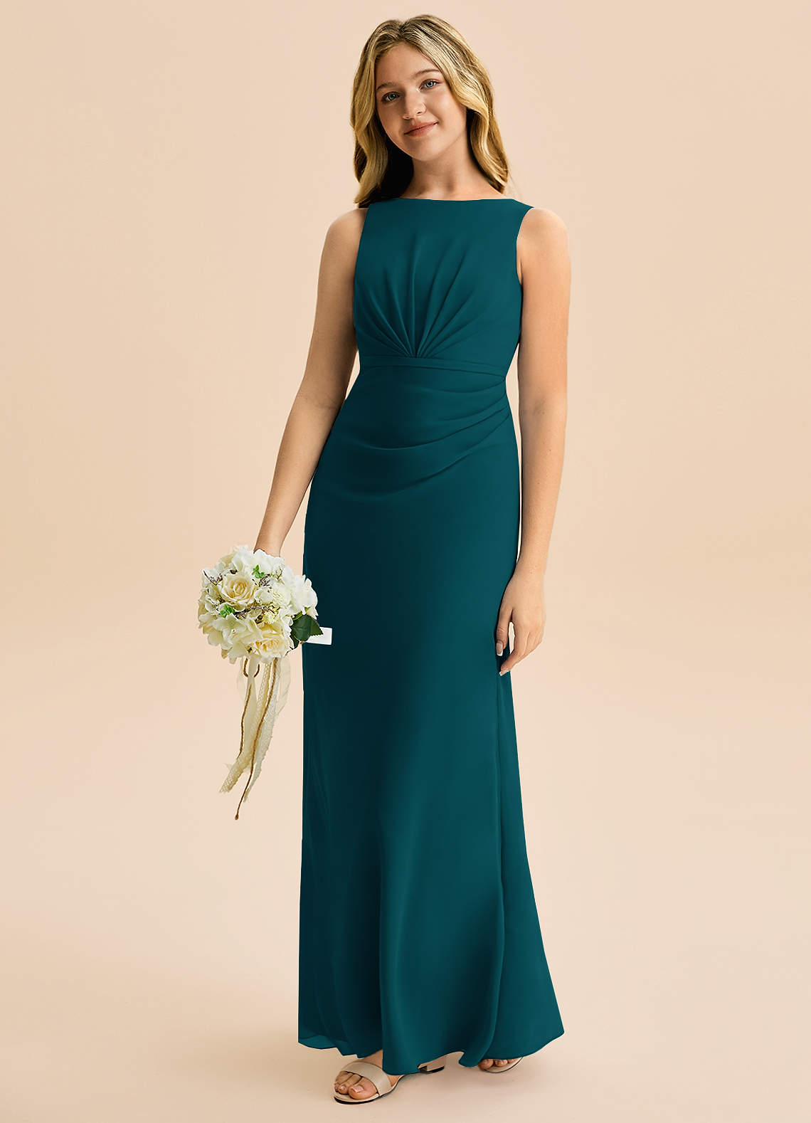 Robe Trapèze en Mousseline de soie Plissée Vert Pin