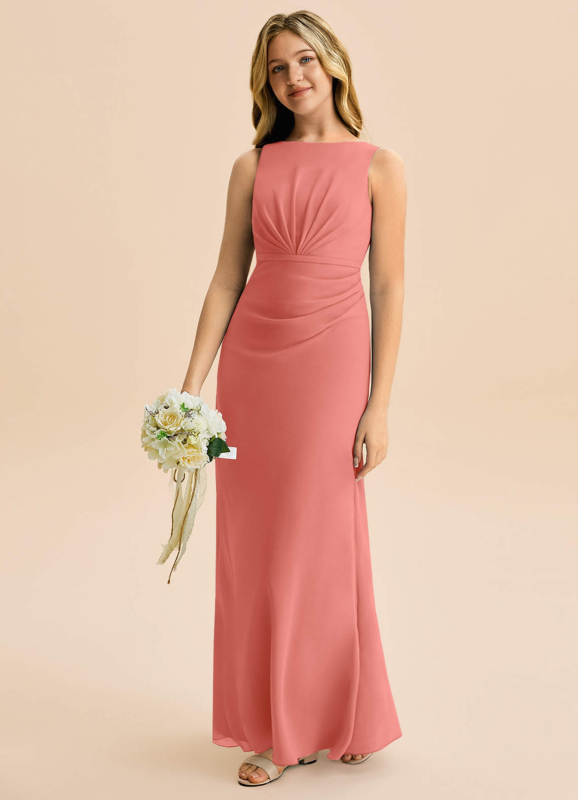 Robe Trapèze en Mousseline de soie Plissée Rose Saumon