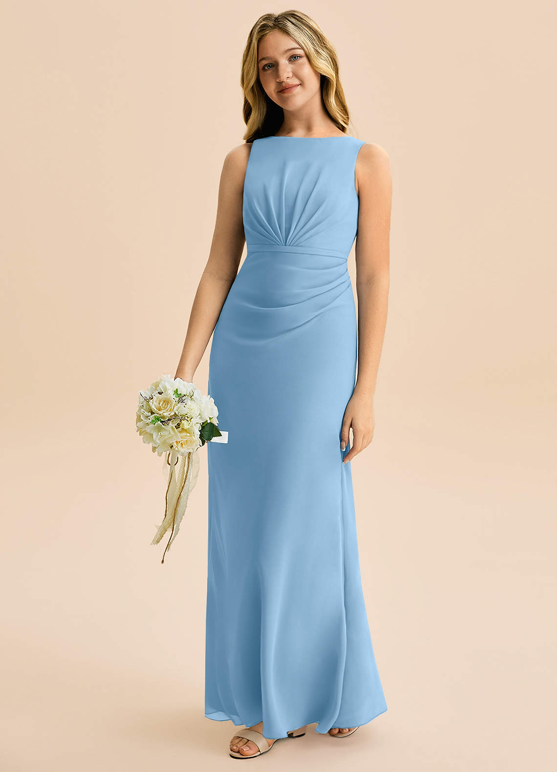 Robe Trapèze en Mousseline de soie Plissée Acier Bleuté