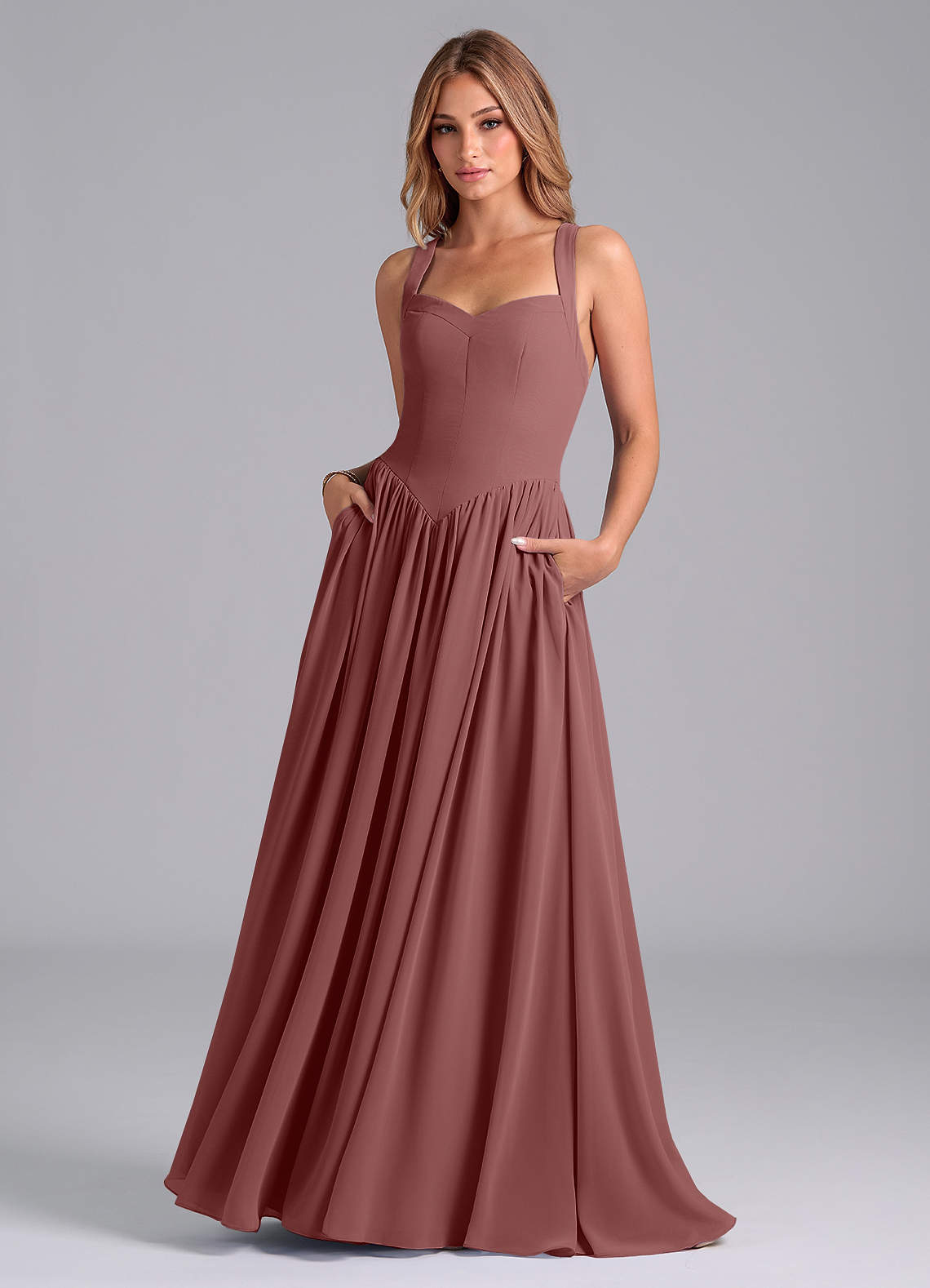 Robe Trapèze en Mousseline de soie Corset Rose Du Désert