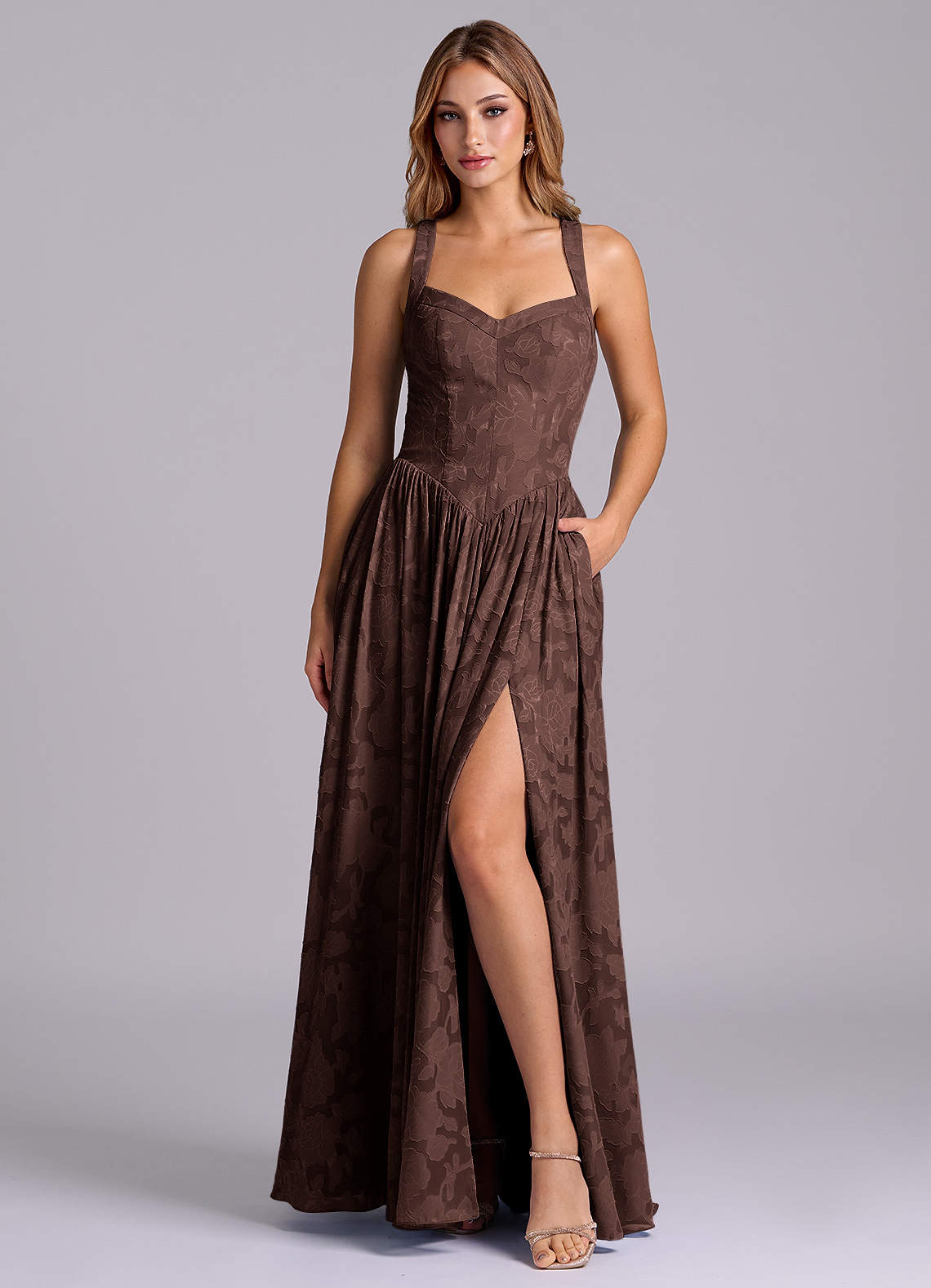 Robe Trapèze en Blumen-Burnout Corset Ganache