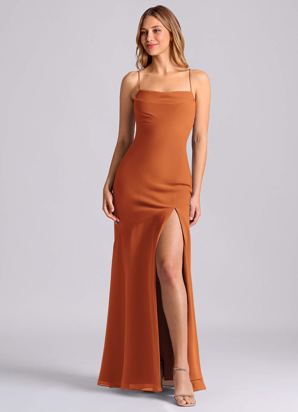Robe Sirène en Mousseline de soie Plissée Cannelle