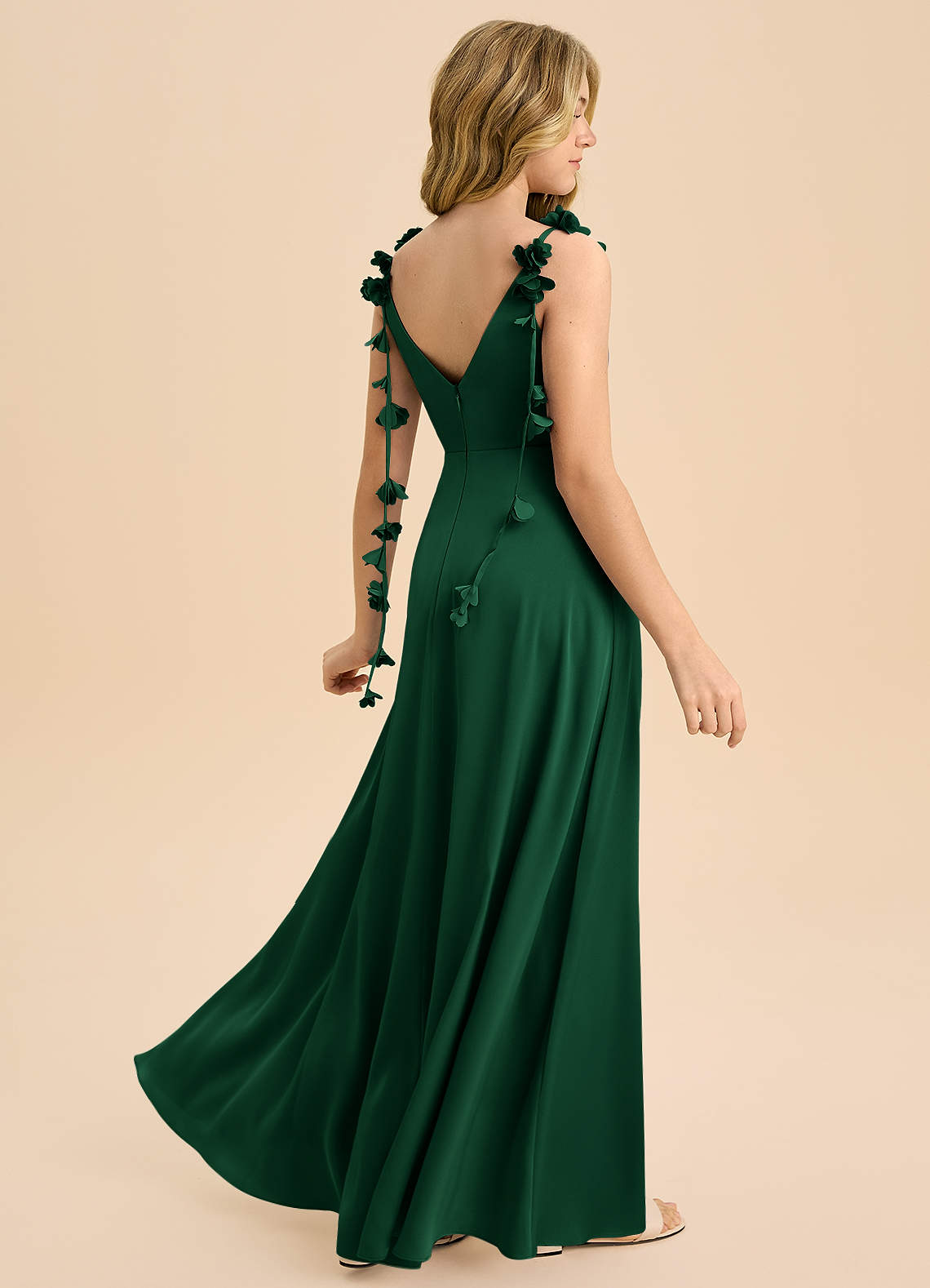 Robe Empire en Satin extensible Plissée Vert Foncé