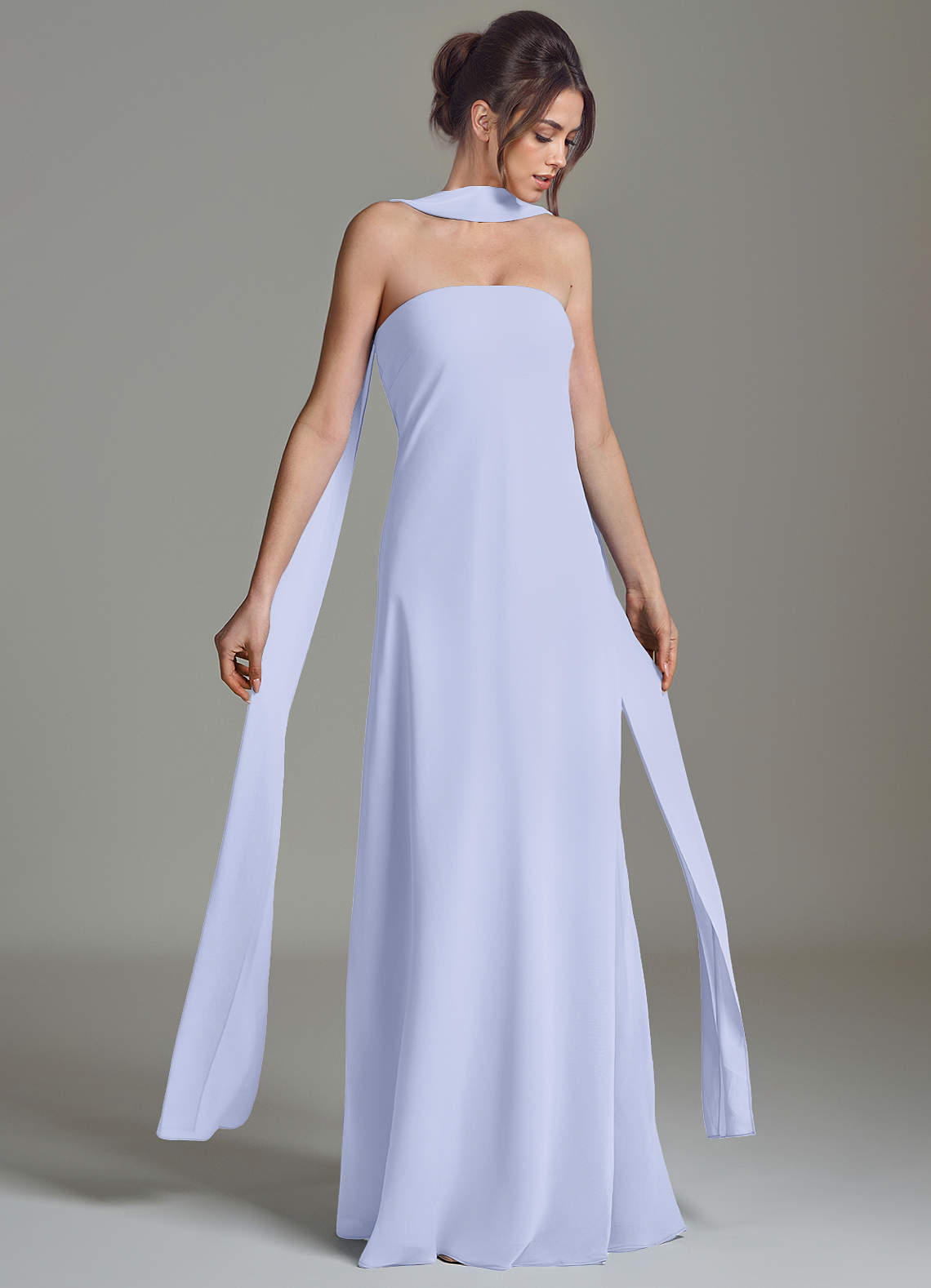 Robe Trapèze en Mousseline de soie Sans bretelles Lavande