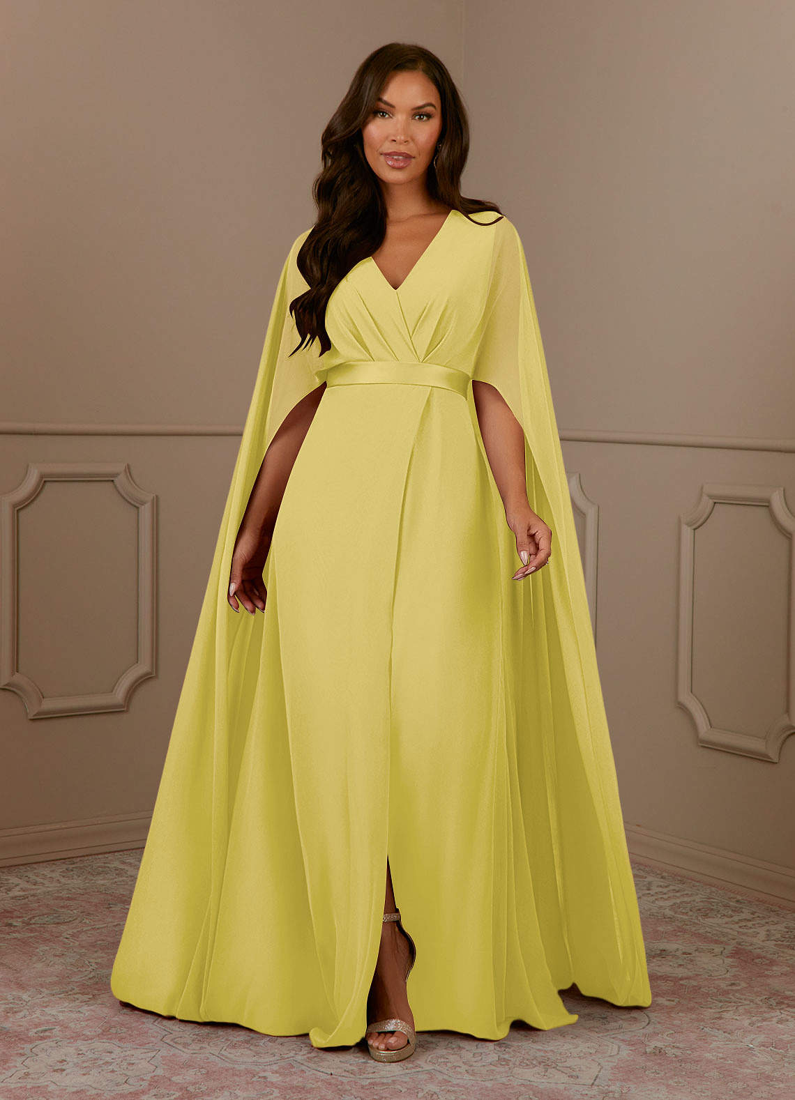 Robe Trapèze en Mousseline de soie Col V plissé Canari