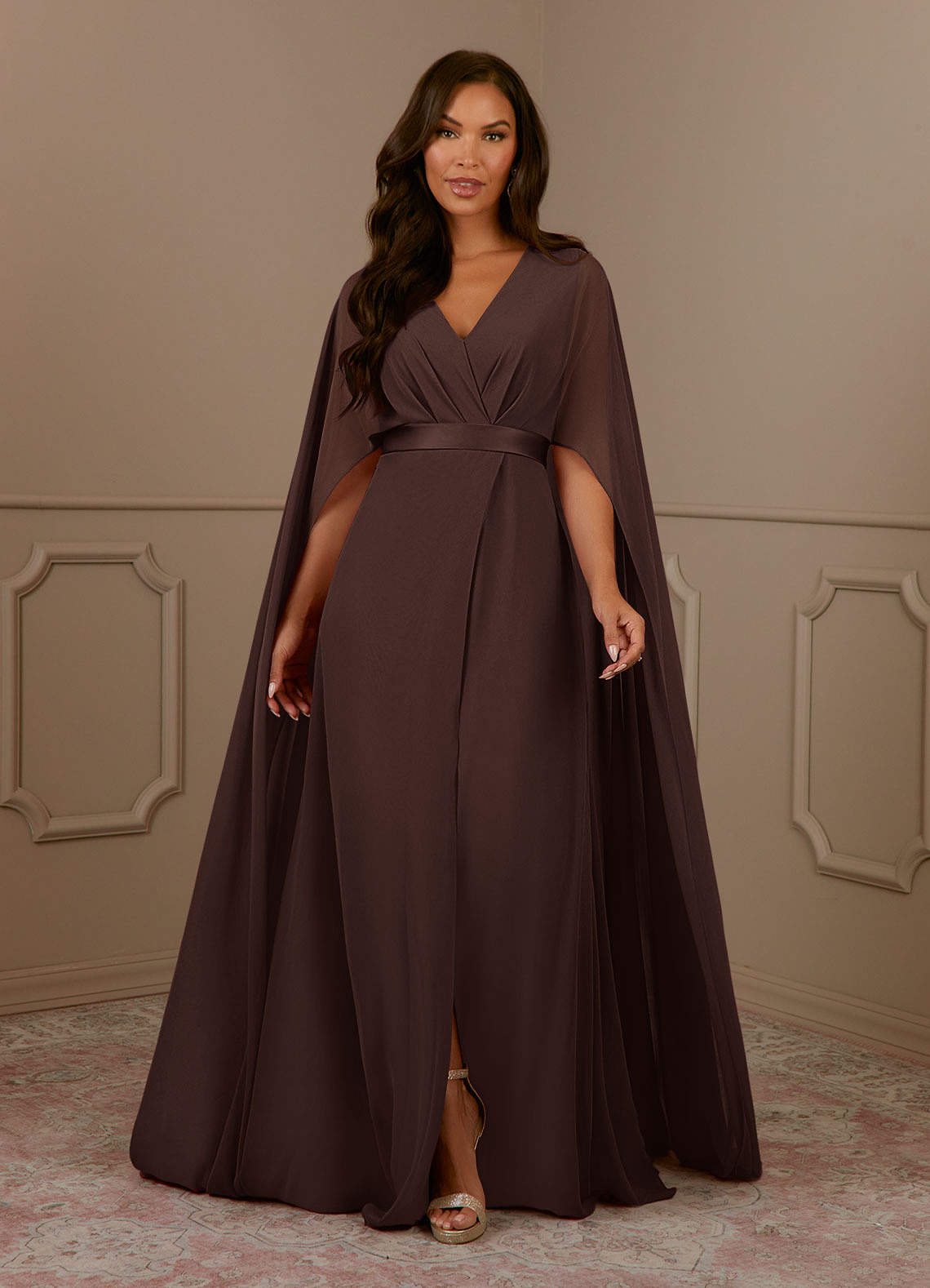 Robe Trapèze en Mousseline de soie Col V plissé Ganache