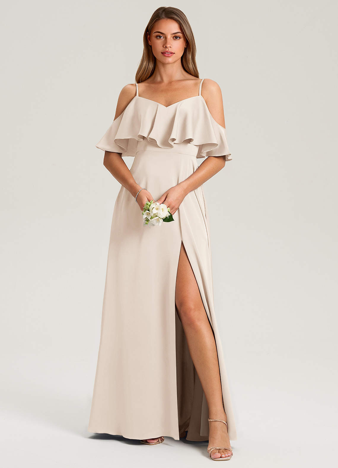 Robe Trapèze en Satin extensible Épaule décolletée Albâtre Blanc