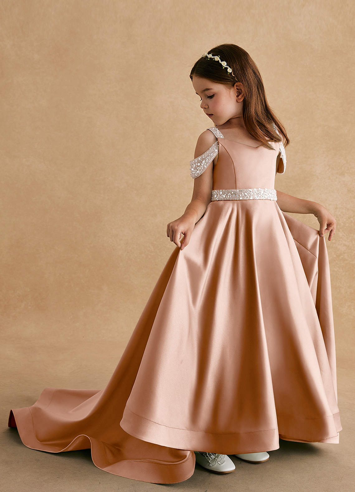 Robe Trapèze en Mat Satiné Champagne Rosé