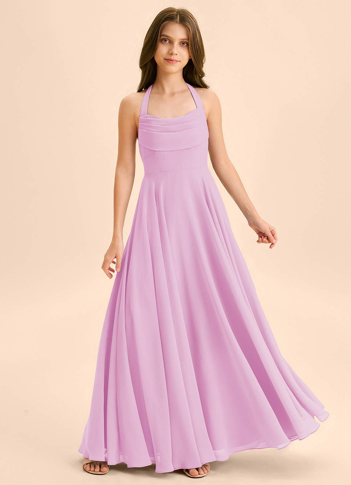 Robe Trapèze en Mousseline de soie Encolure en Forme de Cœur Rose Bonbon