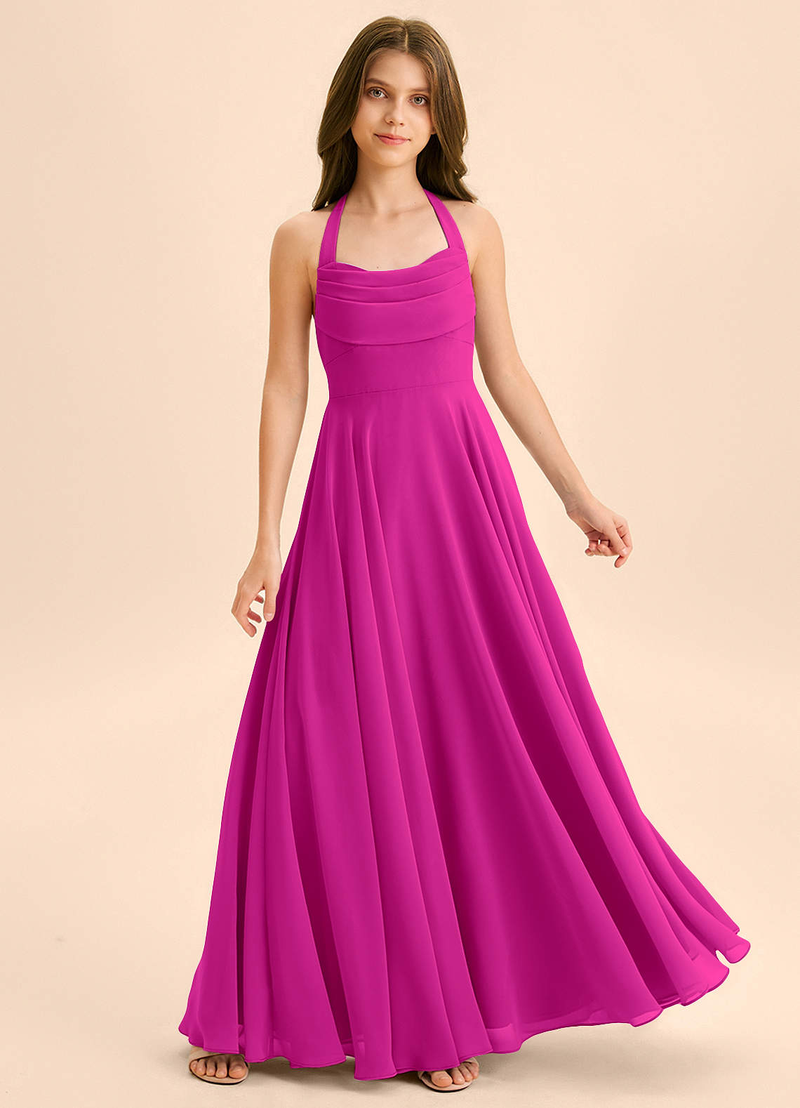 Robe Trapèze en Mousseline de soie Encolure en Forme de Cœur Fuchsia