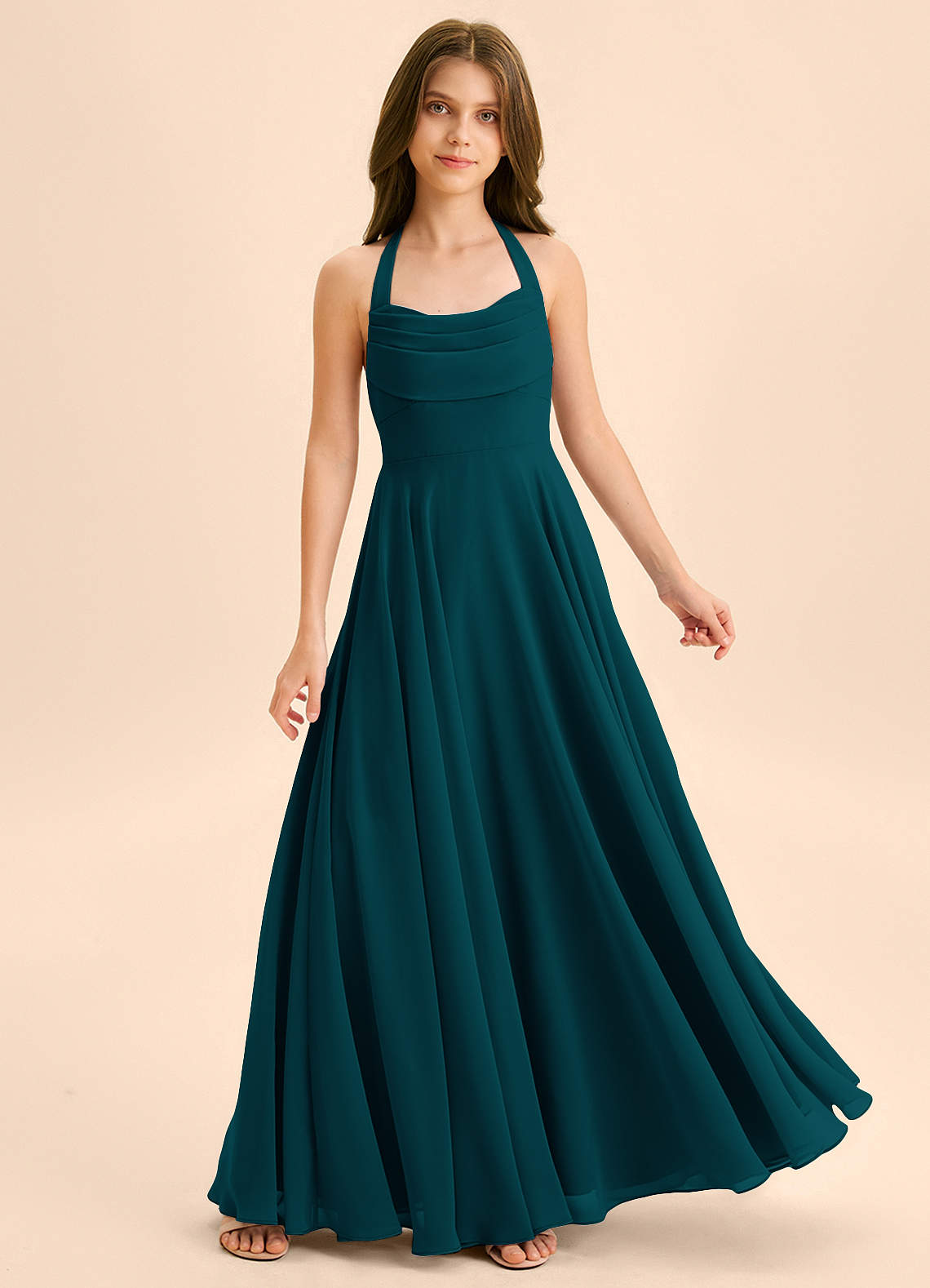 Robe Trapèze en Mousseline de soie Encolure en Forme de Cœur Vert Pin