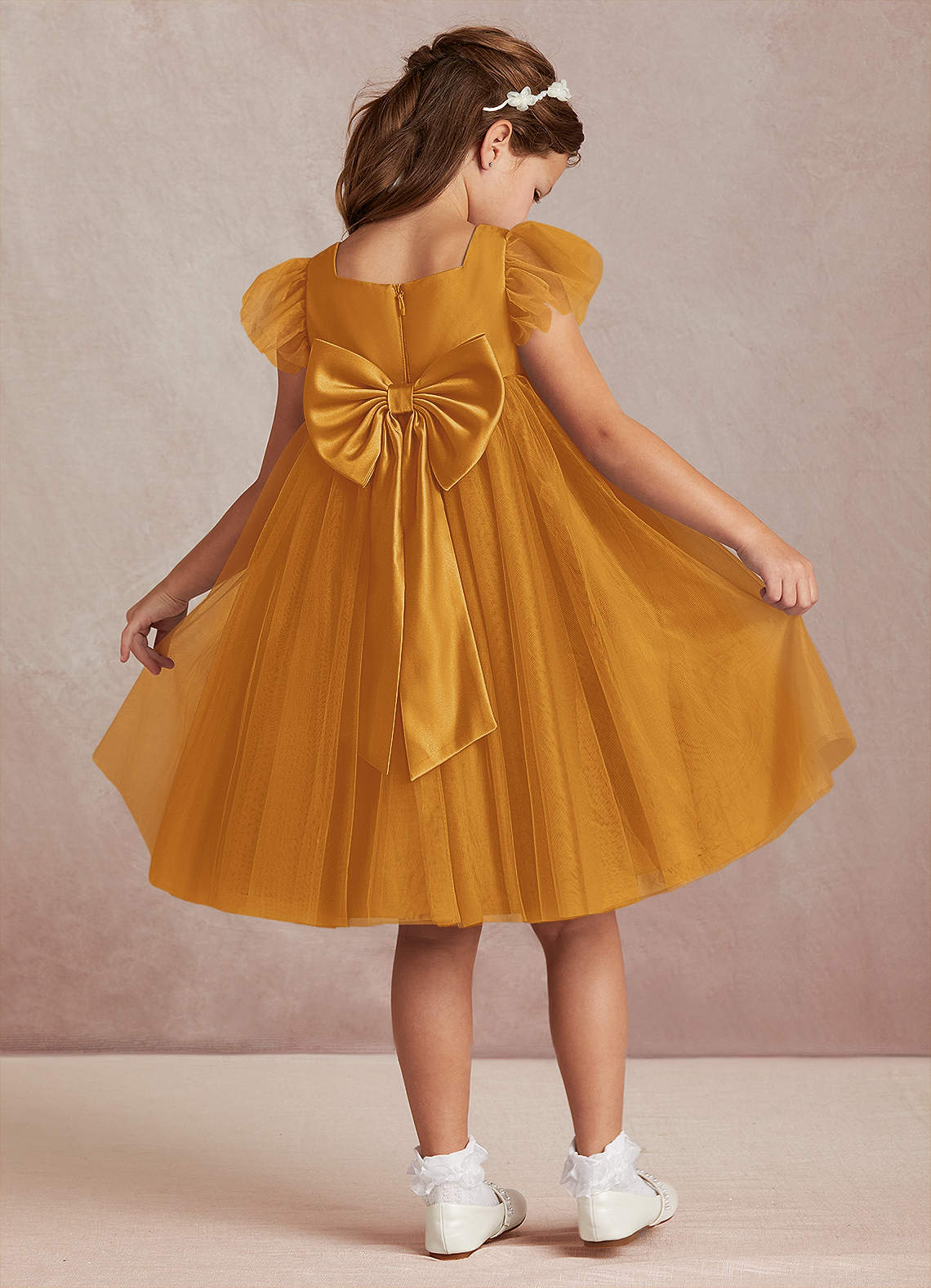 Robe Trapèze en Tulle avec manches Caramel écossais