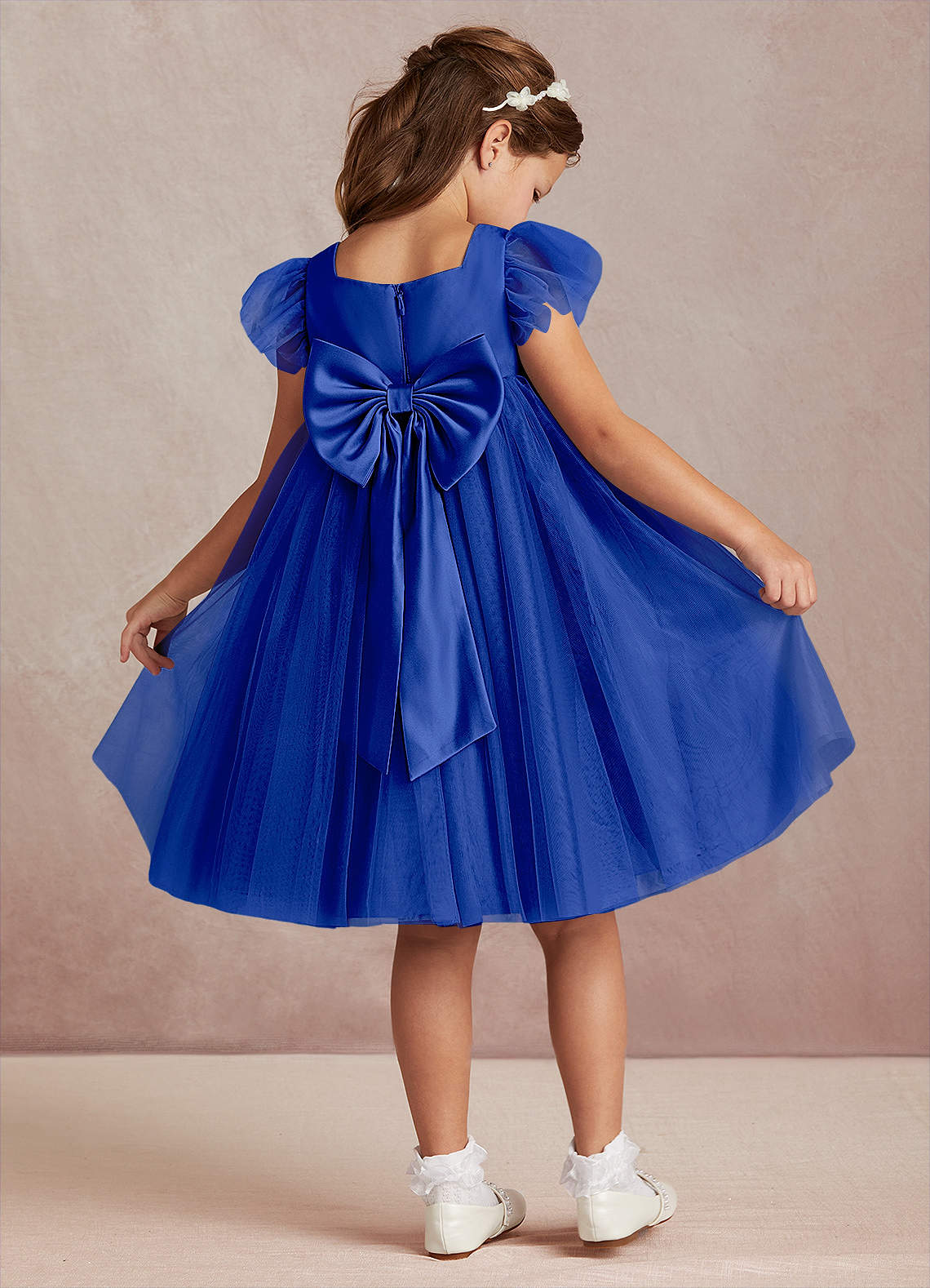 Robe Trapèze en Tulle avec manches Bleu Roi