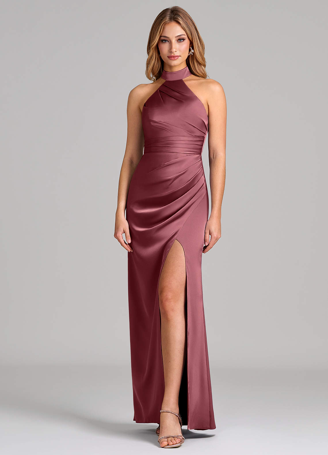 Robe Fourreau en Satin extensible Plissée Rose Du Désert