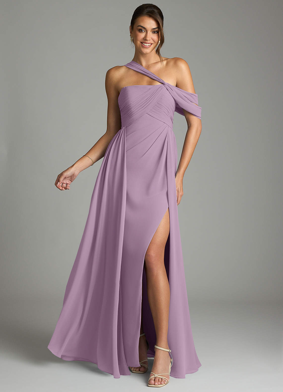 Robe Trapèze en Mousseline de soie Épaule décolletée Glycine