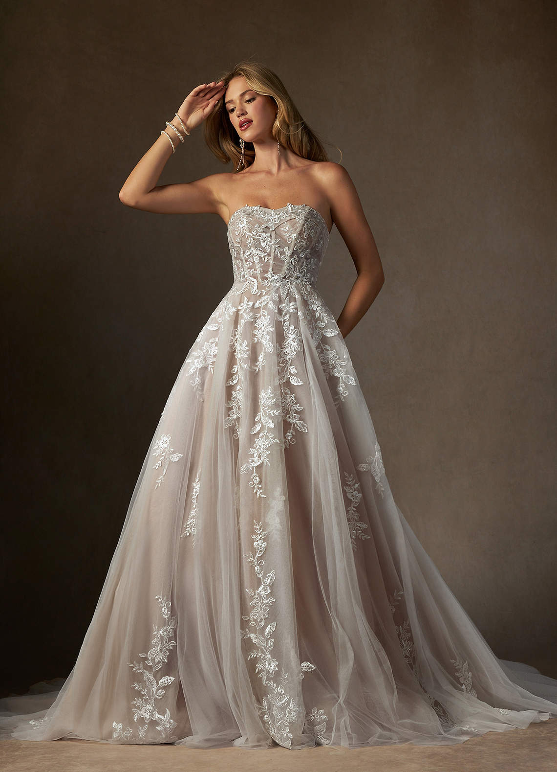Robe Princesse en Dentelle Sans bretelles Blanc Diamant Caramel