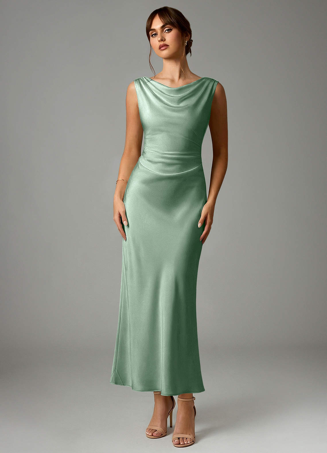 Robe Sirène en Satin extensible Plissée Agave