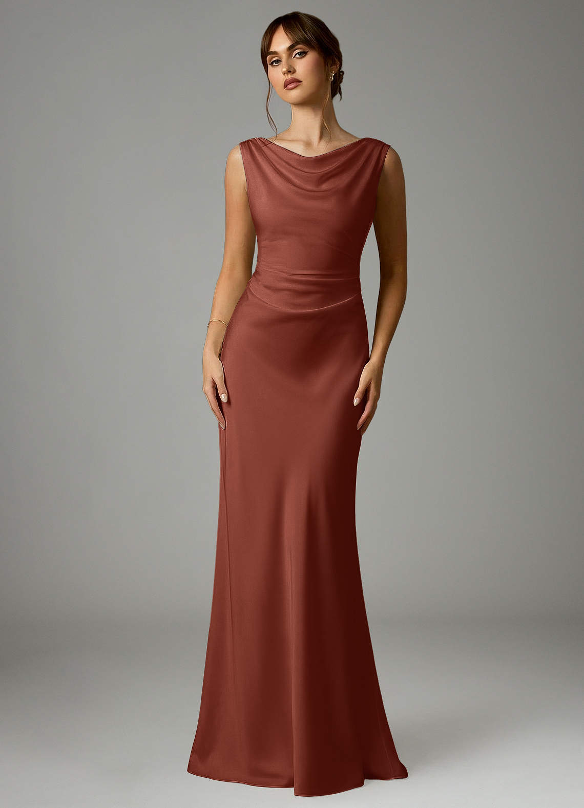 Robe Sirène en Satin extensible Plissée Auburn