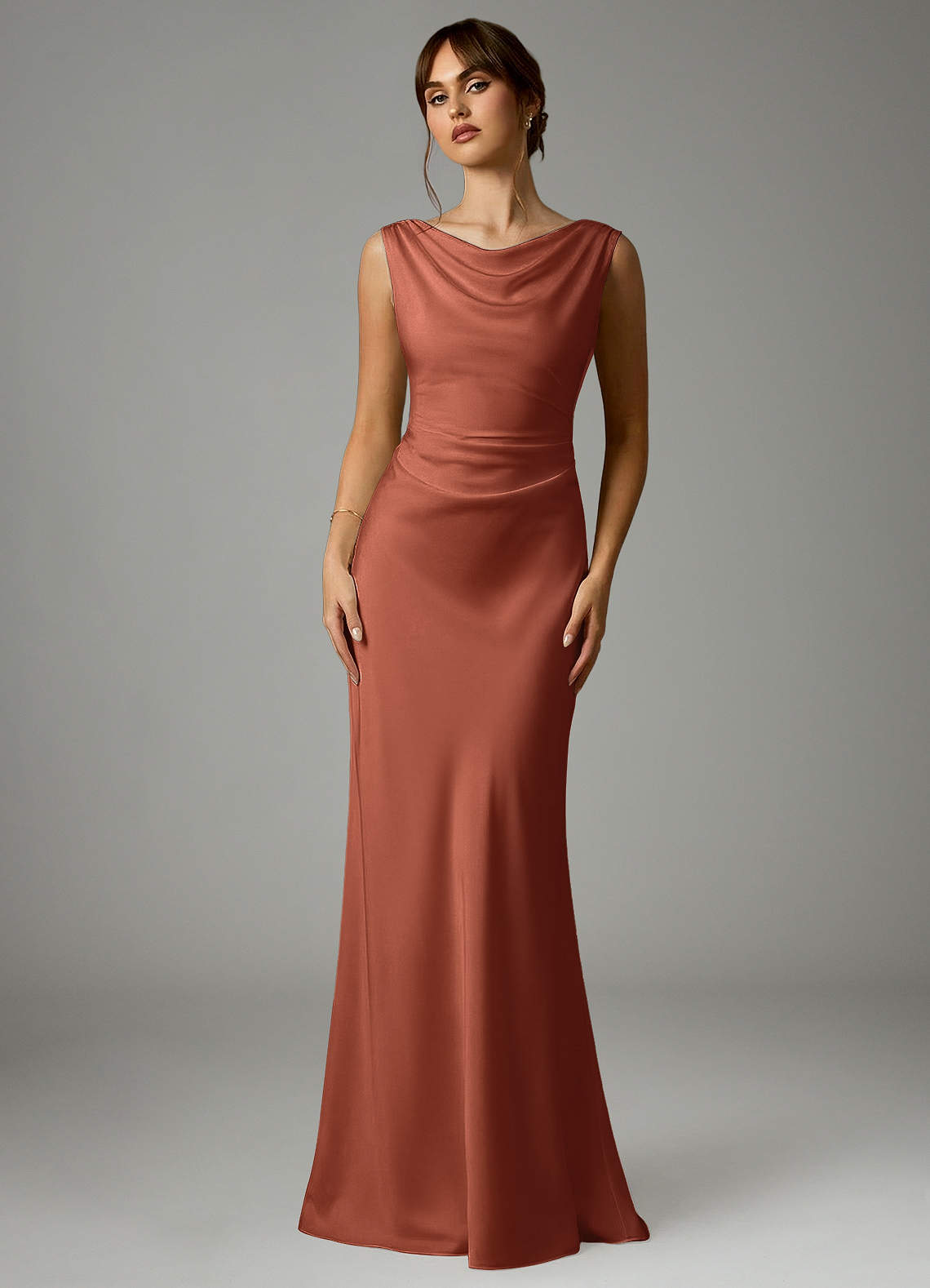 Robe Sirène en Satin extensible Plissée Argile