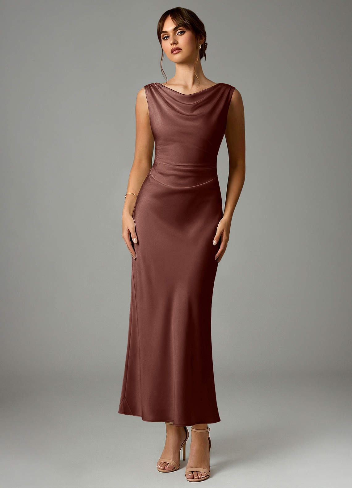 Robe Sirène en Satin extensible Plissée Expresso