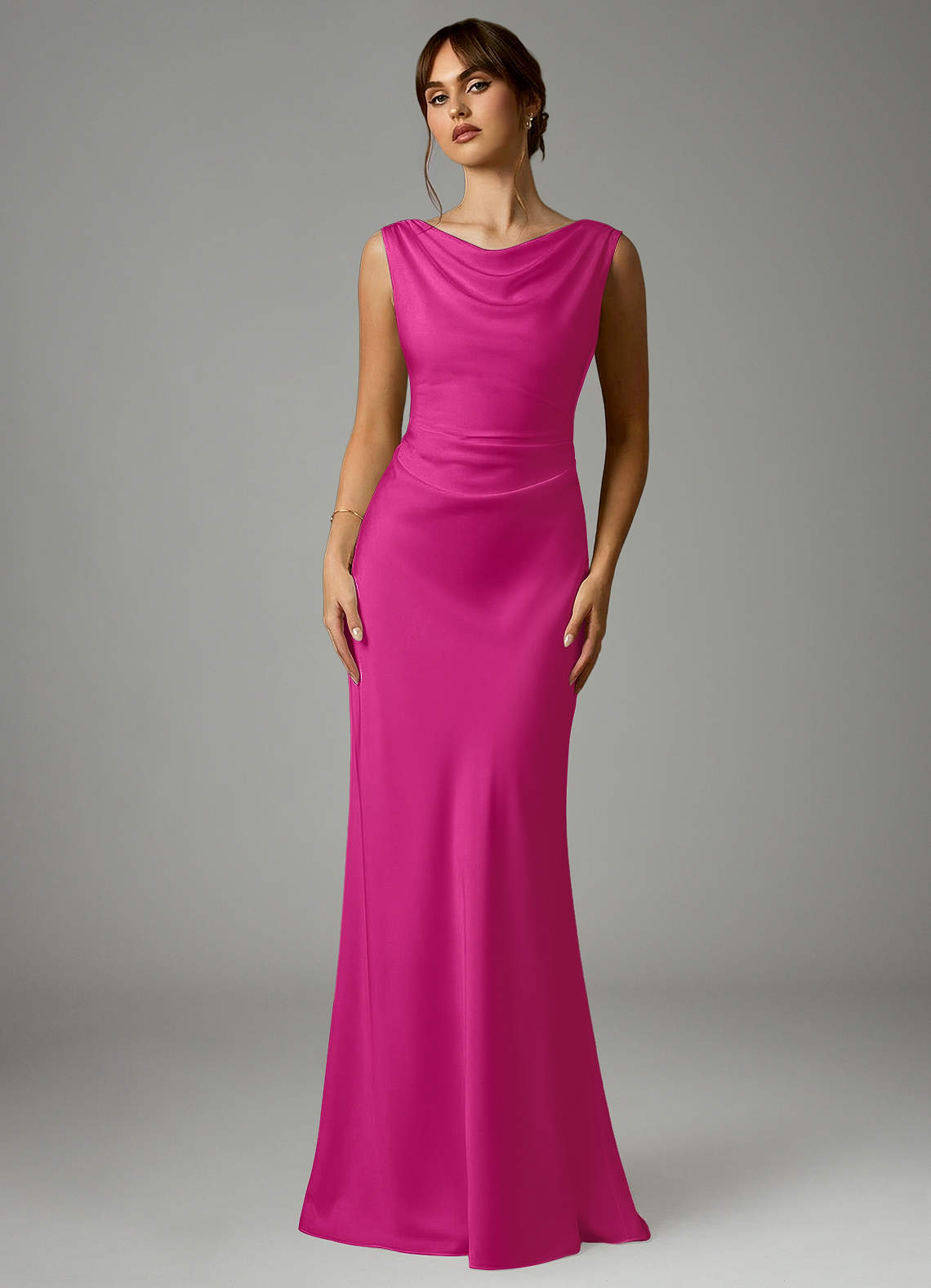 Robe Sirène en Satin extensible Plissée Fuchsia