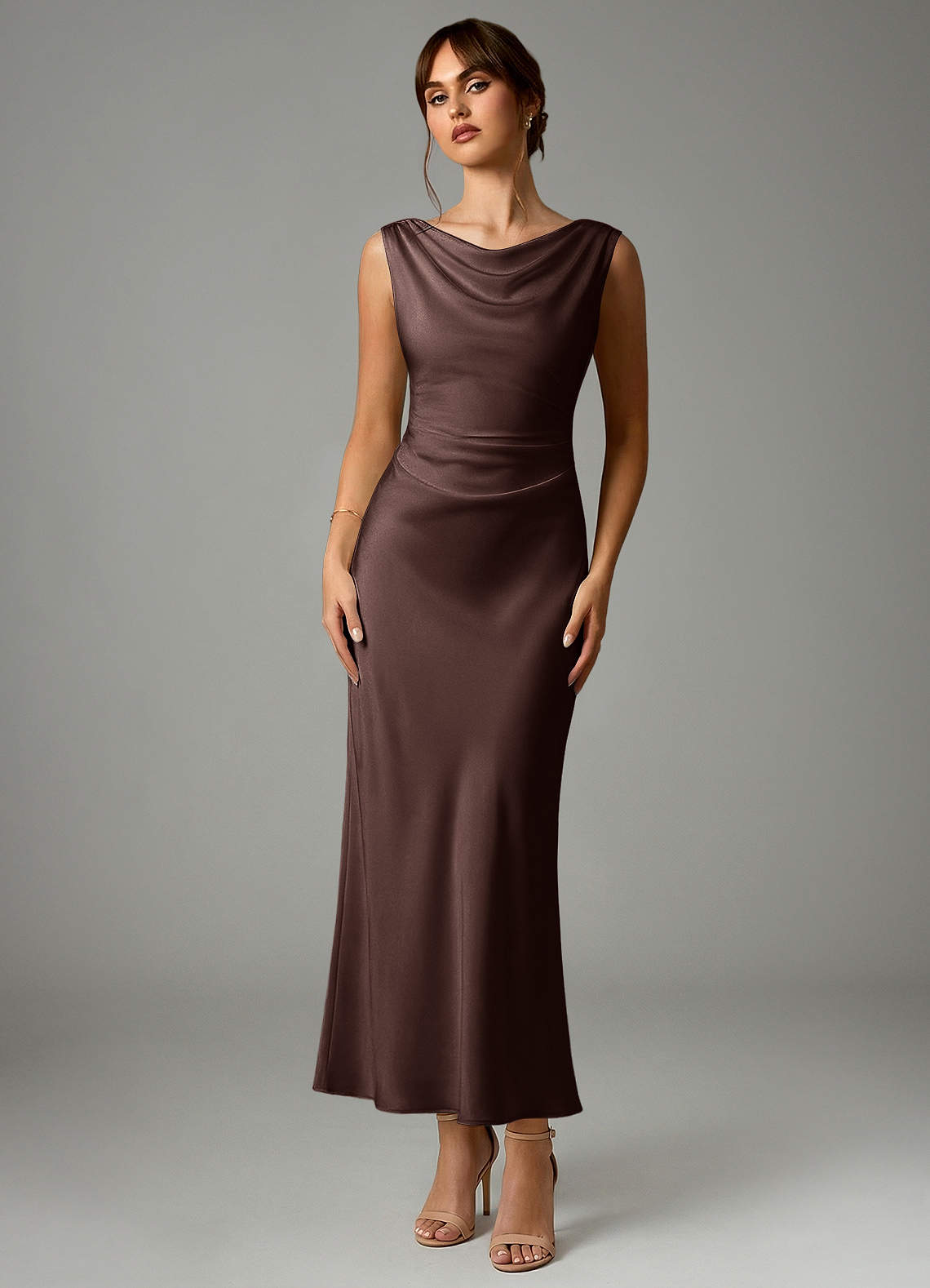 Robe Sirène en Satin extensible Plissée Ganache