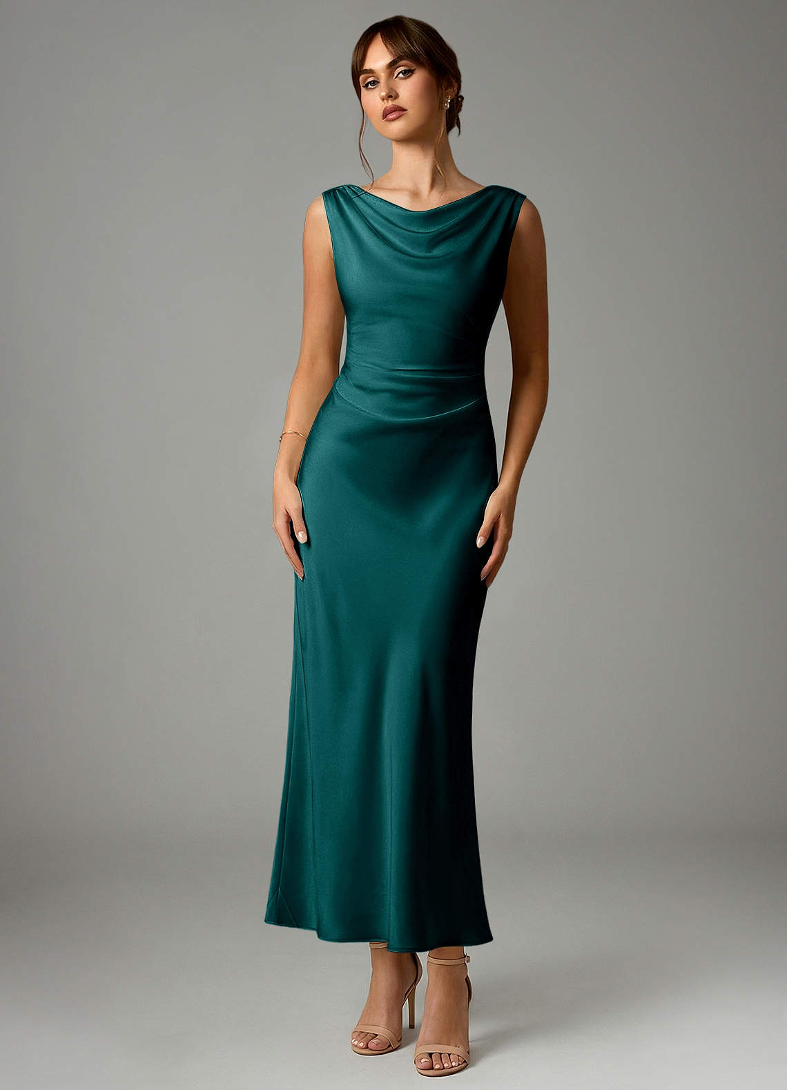 Robe Sirène en Satin extensible Plissée Paon
