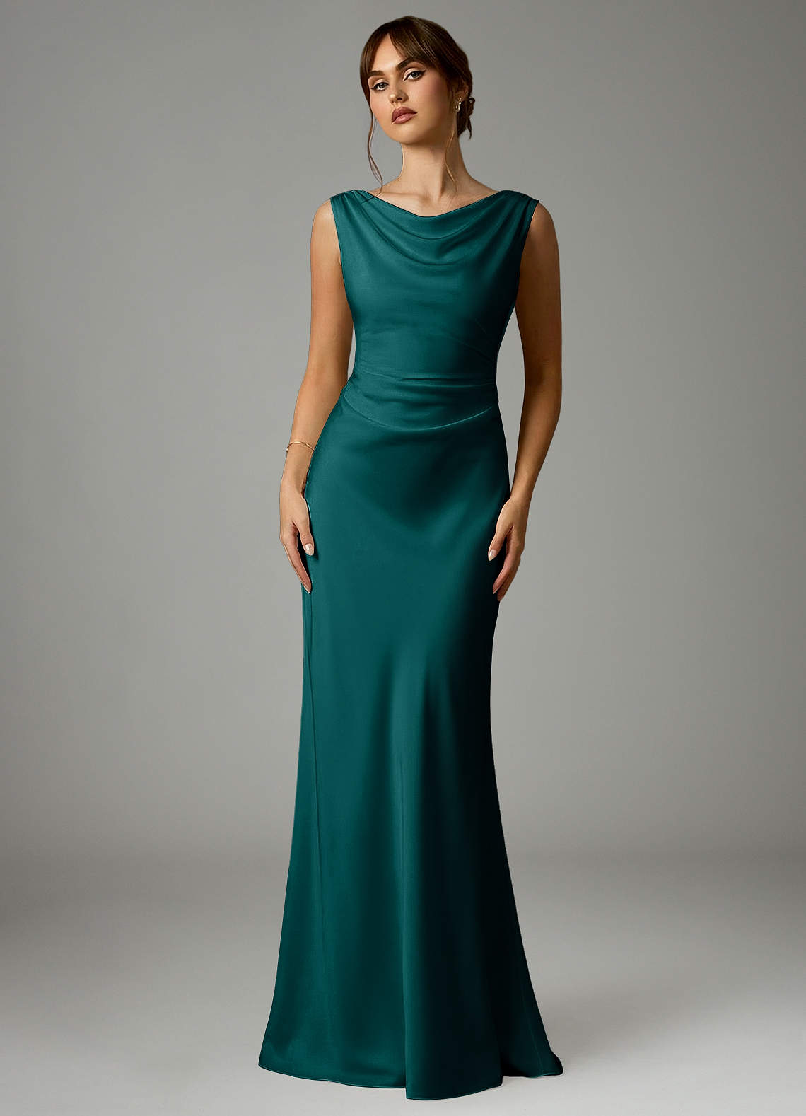 Robe Sirène en Satin extensible Plissée Paon