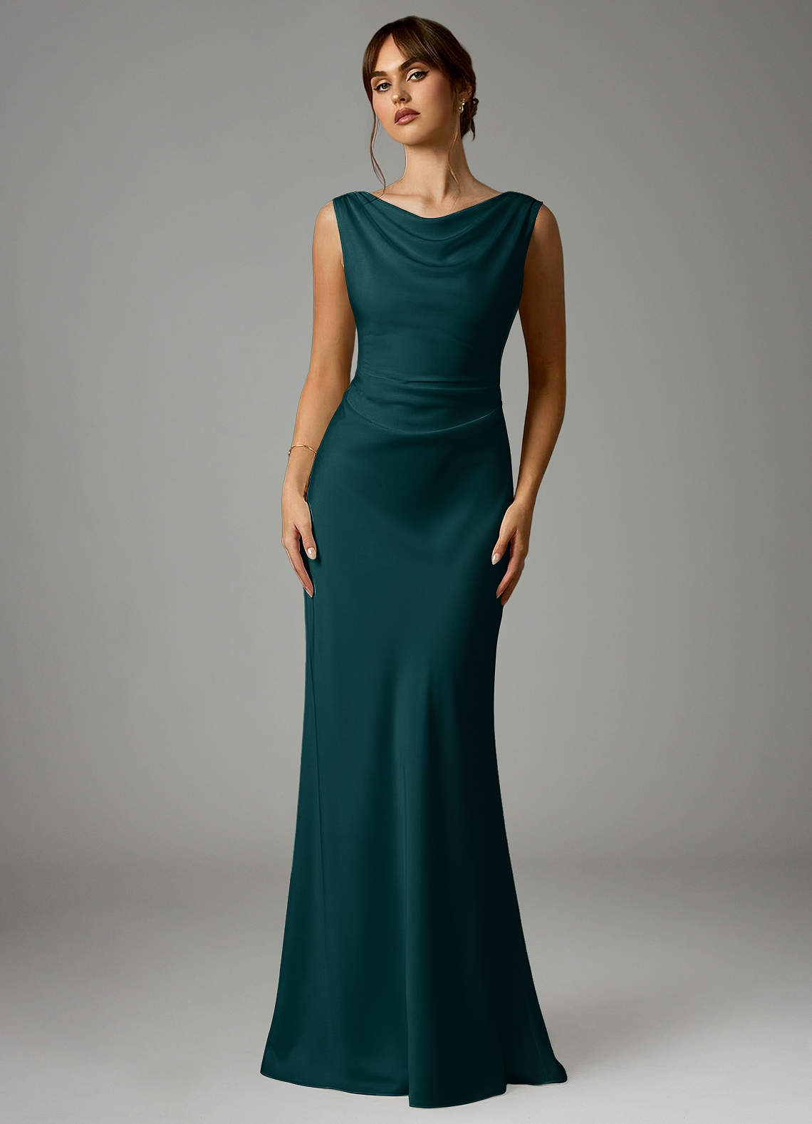 Robe Sirène en Satin extensible Plissée Vert Pin