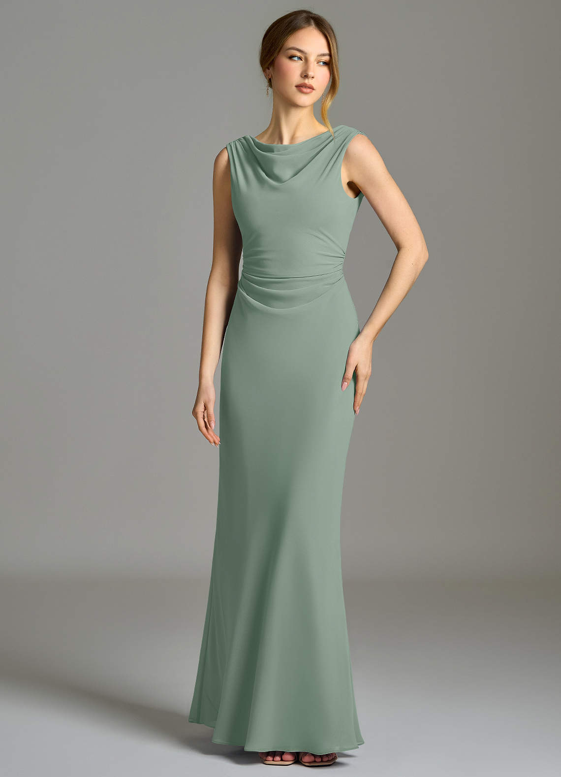 Robe Sirène en Mousseline de soie Plissée Sauge D'argent