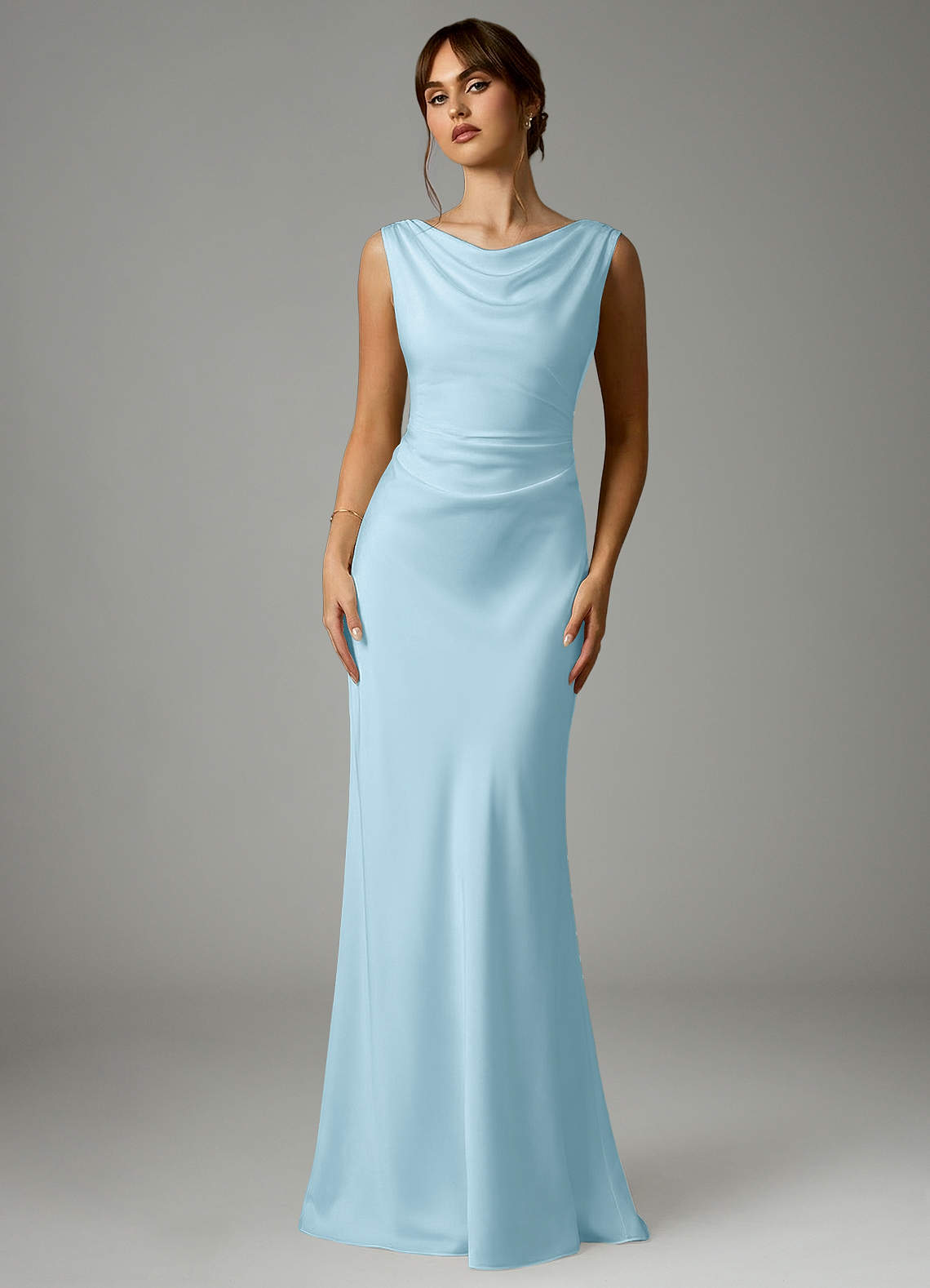 Robe Sirène en Satin extensible Plissée Bleu Ciel