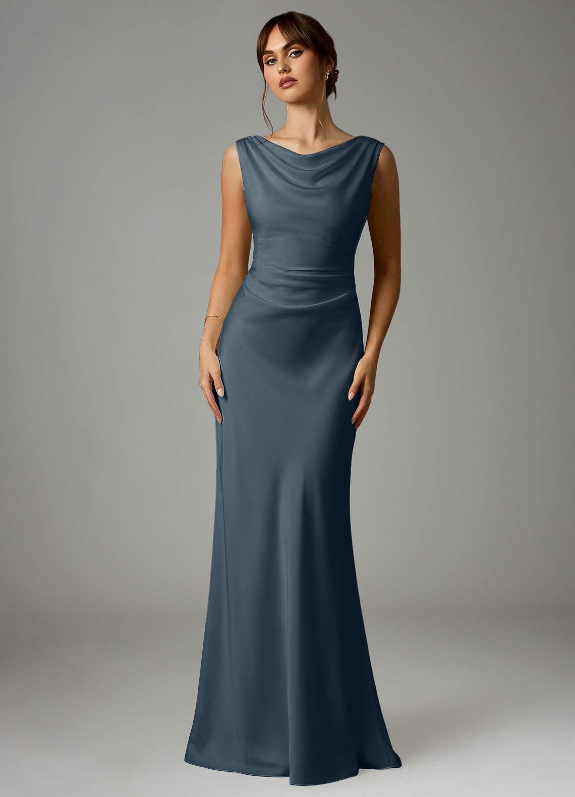 Robe Sirène en Satin extensible Plissée Violet Crépusculaire
