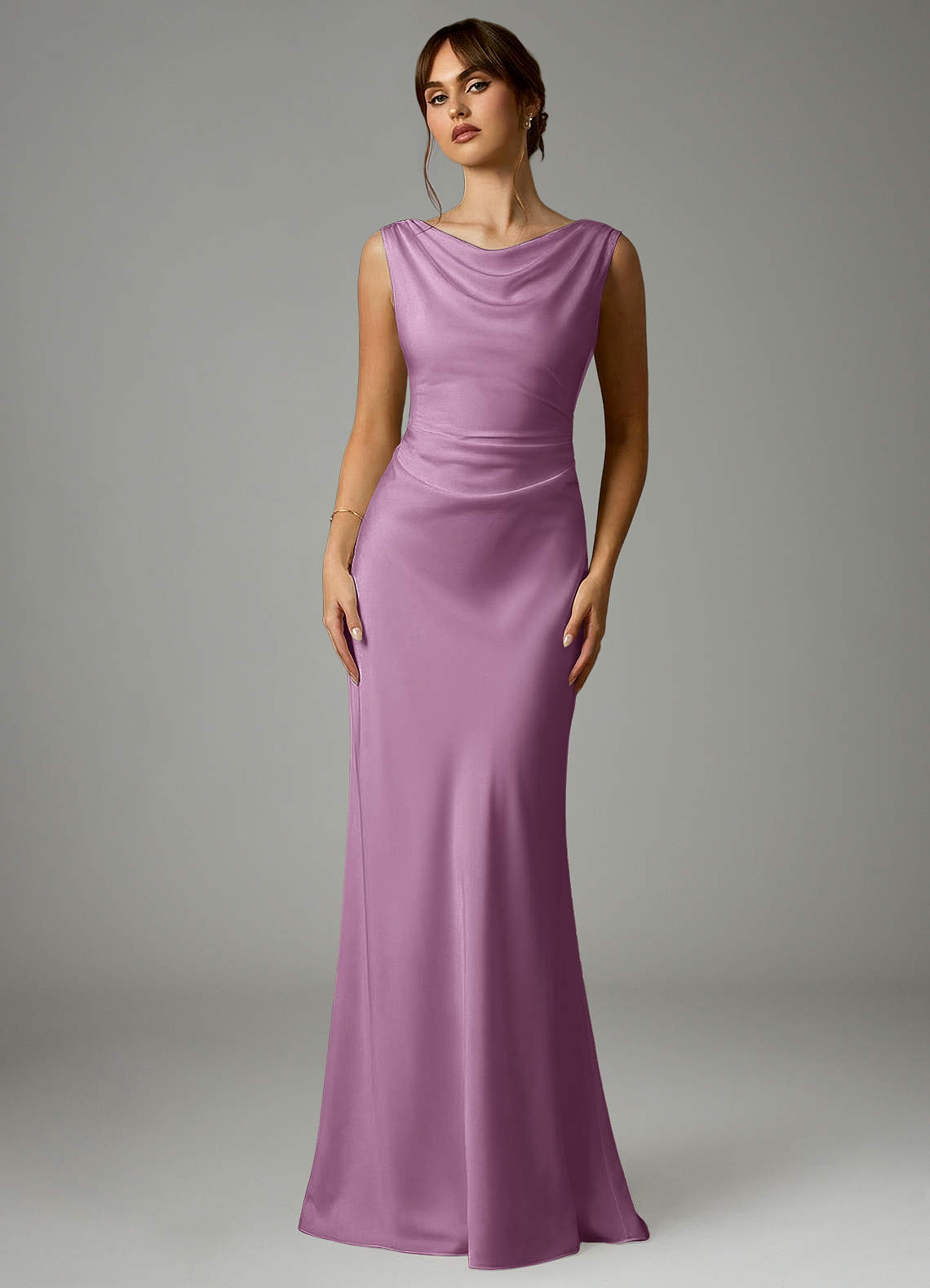 Robe Sirène en Satin extensible Plissée Glycine
