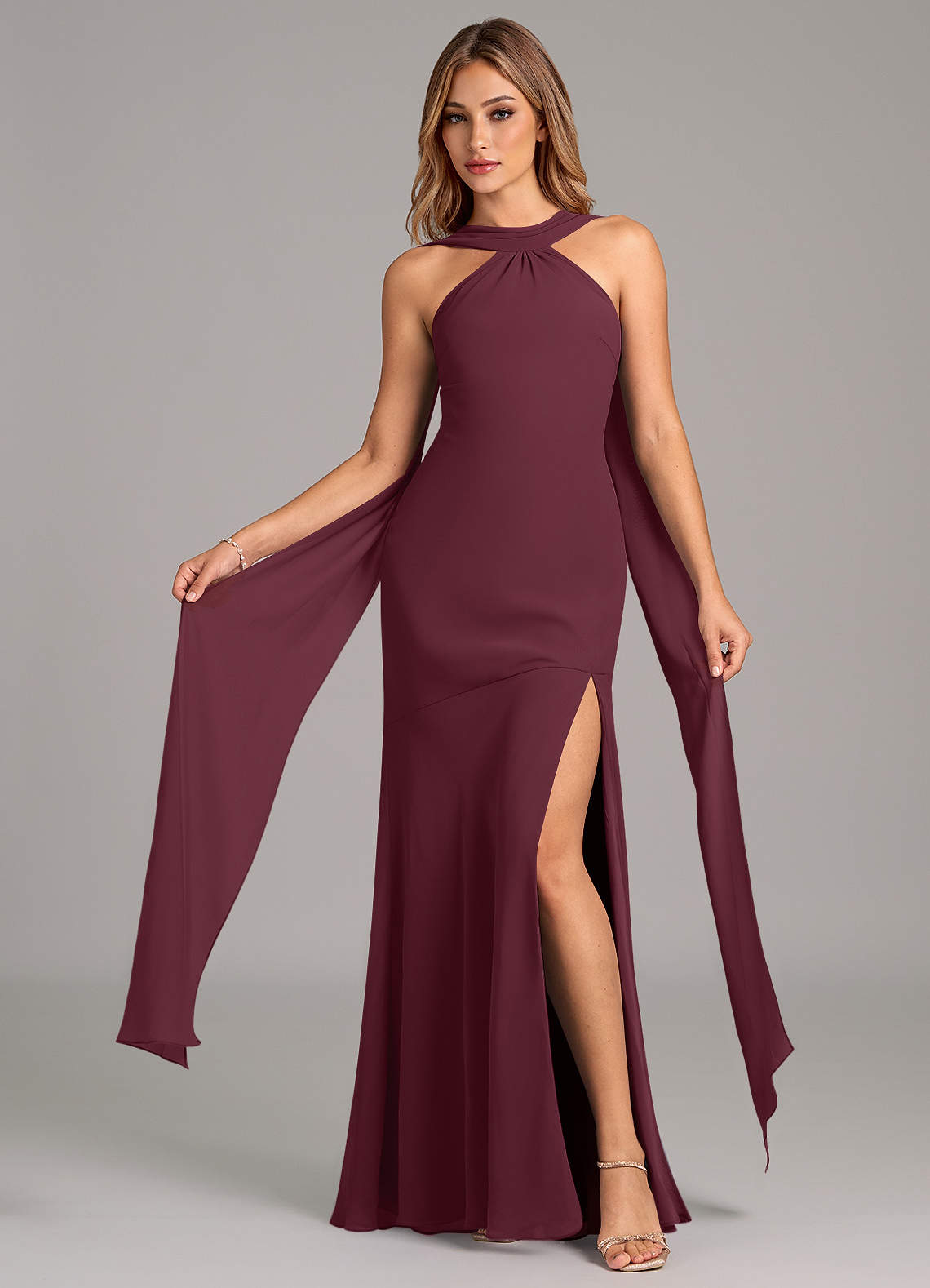 Robe Sirène en Mousseline de soie Plissée Cabernet