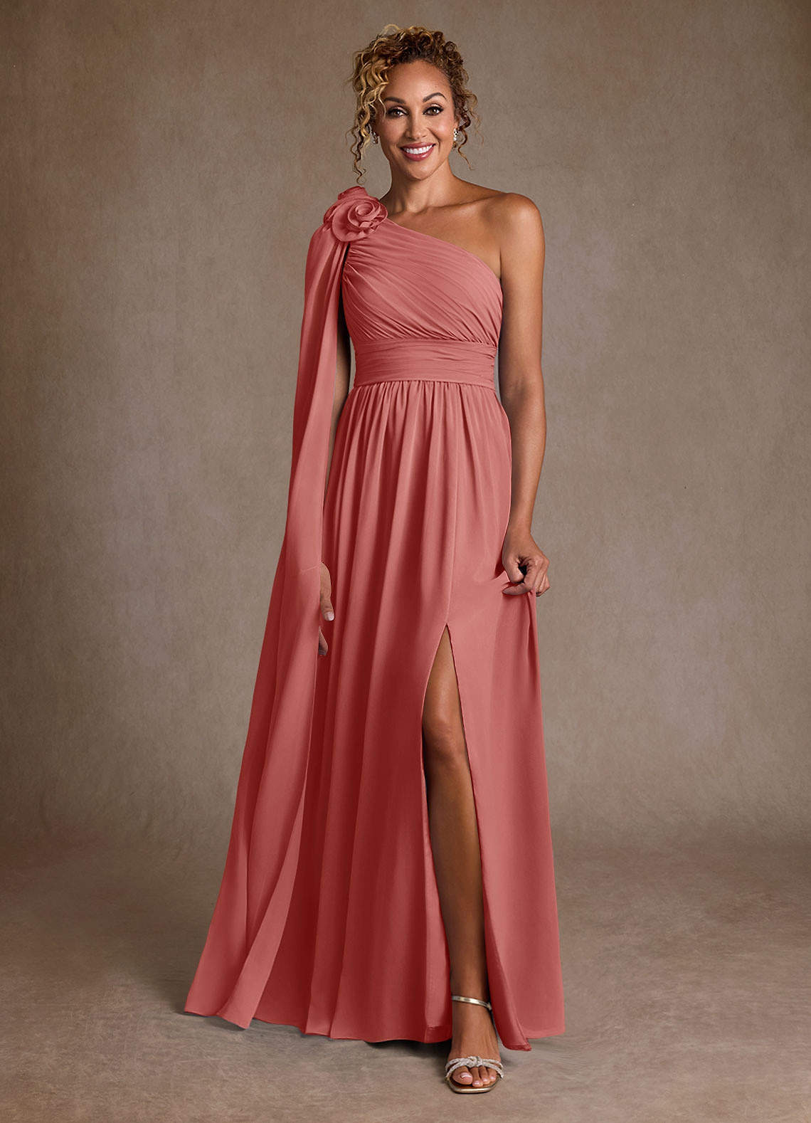 Robe Trapèze en Mousseline de soie Une épaule Antique Rose