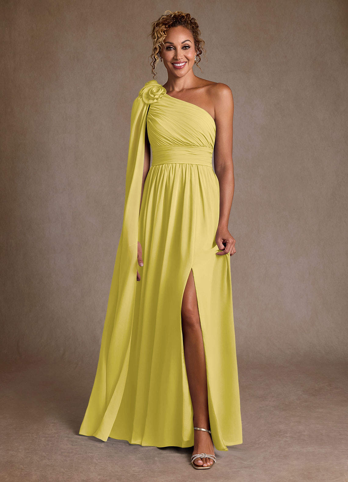 Robe Trapèze en Mousseline de soie Une épaule Canari