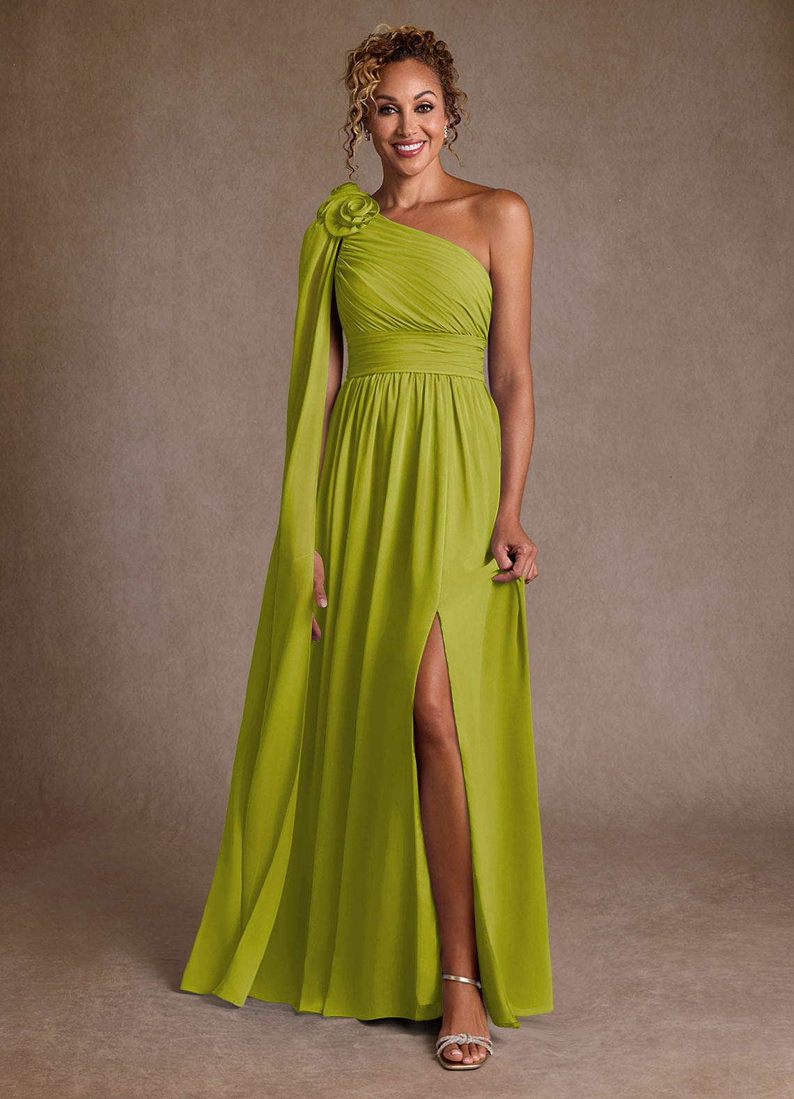Robe Trapèze en Mousseline de soie Une épaule Citronnelle