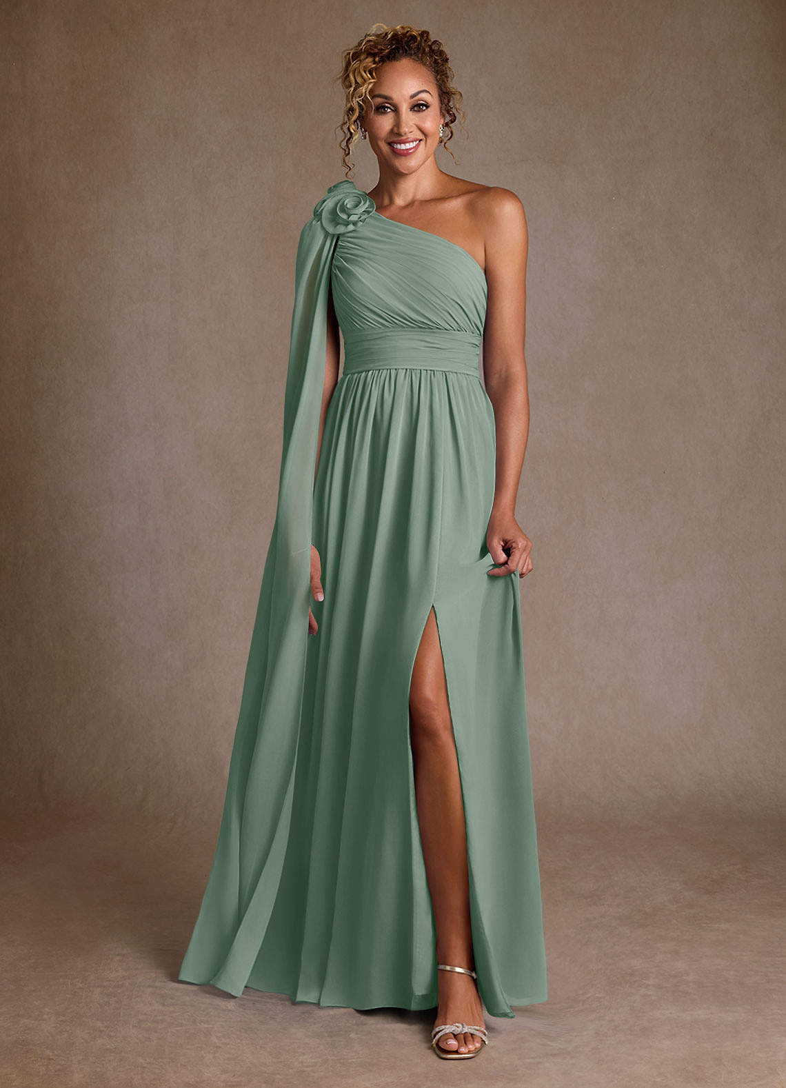 Robe Trapèze en Mousseline de soie Une épaule Sauge D'argent
