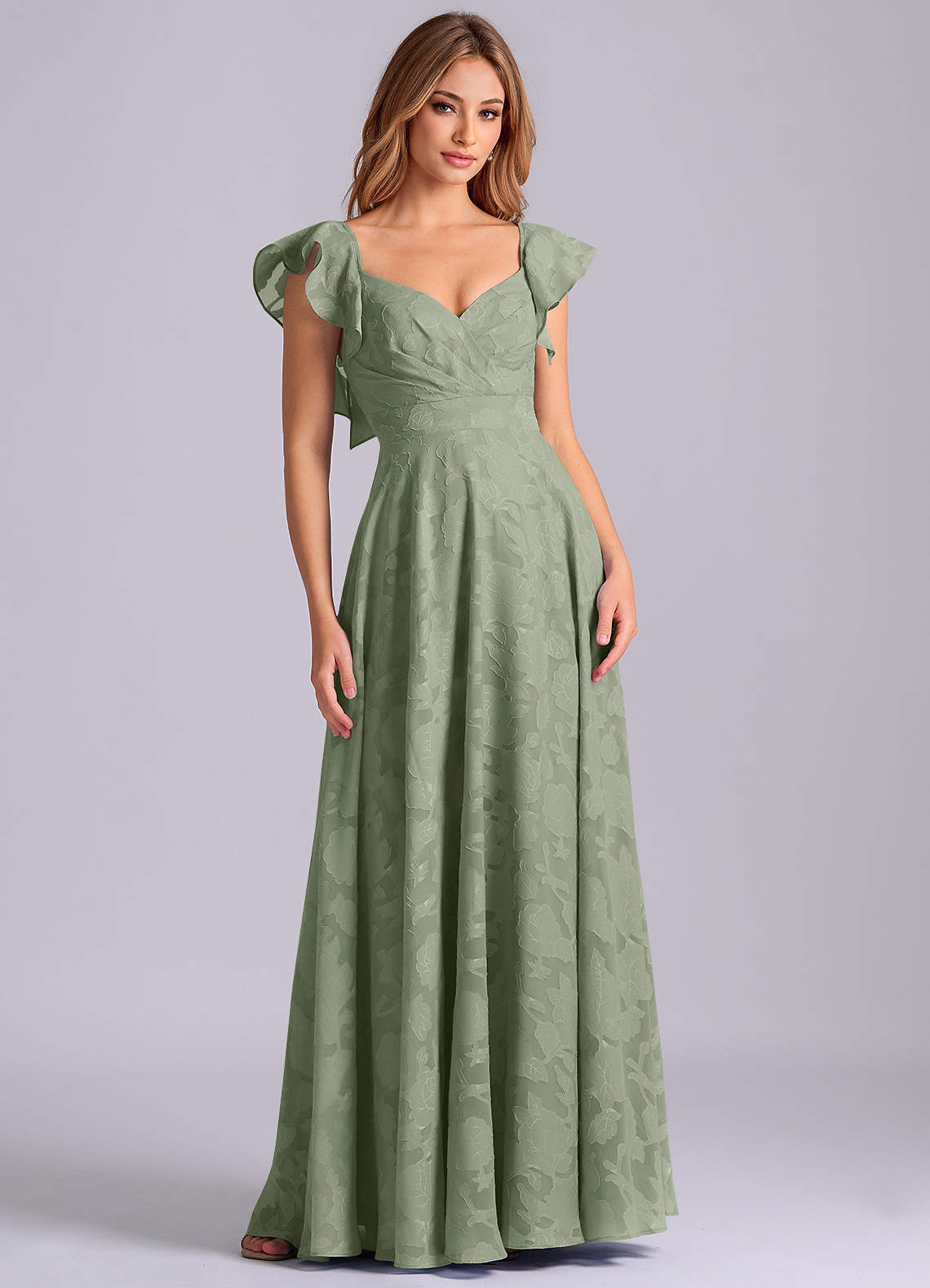 Robe Trapèze en Blumen-Burnout Encolure en Forme de Cœur Agave