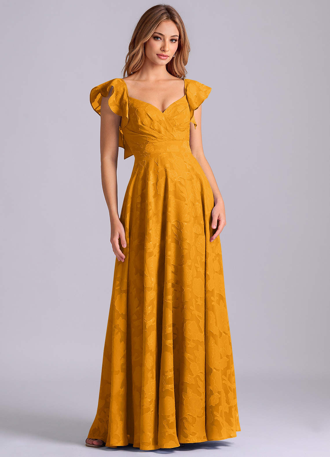 Robe Trapèze en Blumen-Burnout Encolure en Forme de Cœur Caramel écossais