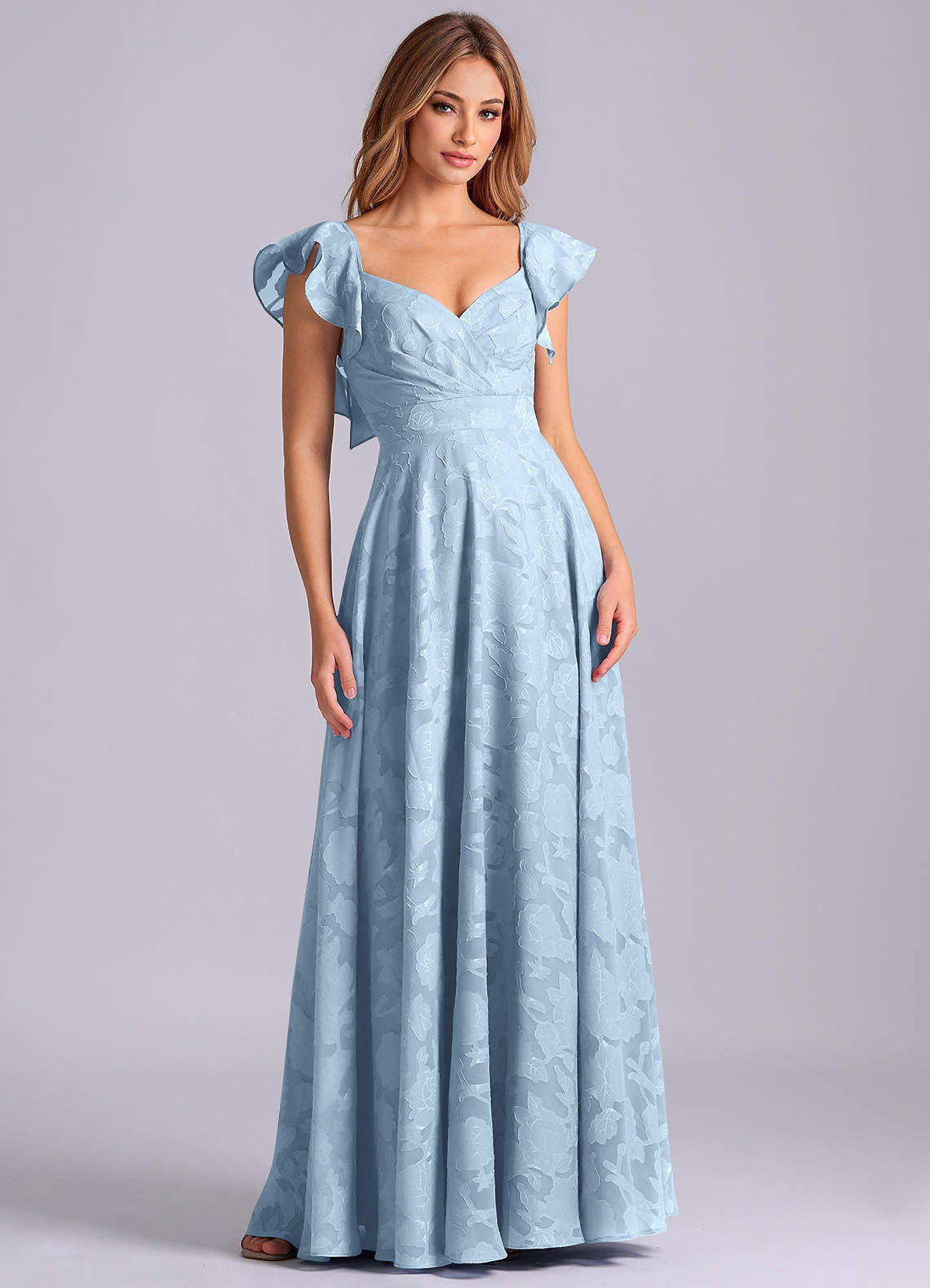 Robe Trapèze en Blumen-Burnout Encolure en Forme de Cœur Bleu Ciel