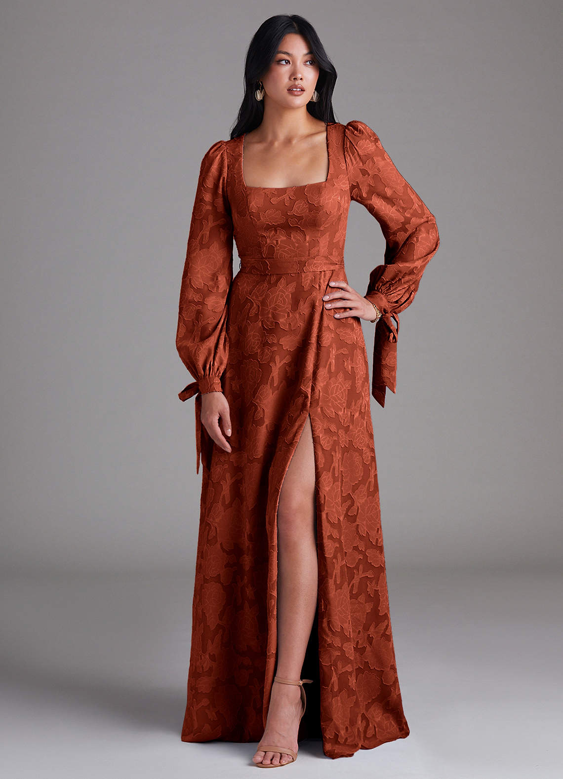 Robe Trapèze en Blumen-Burnout Manche longue Auburn