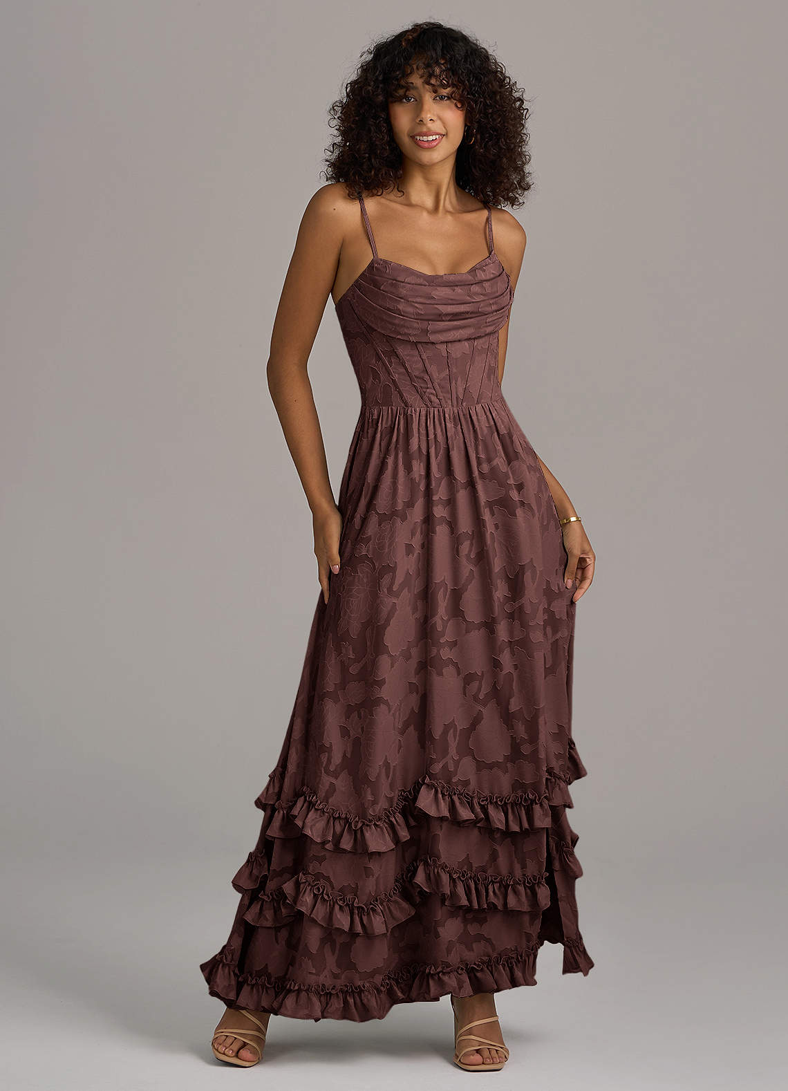 Robe Trapèze en Blumen-Burnout Corset Expresso