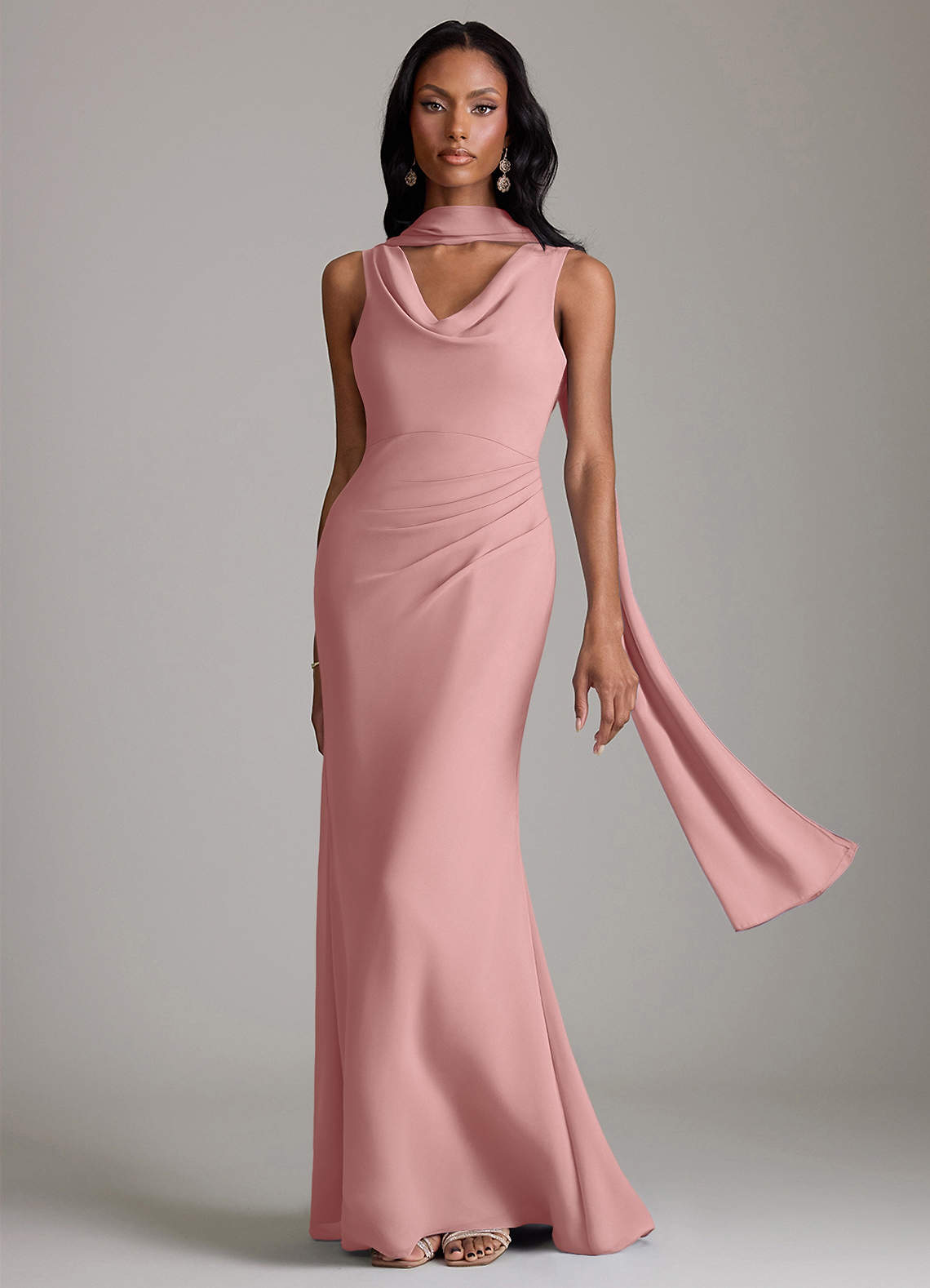 Robe Sirène en Mousseline de soie Plissée Rose Poussiéreuse