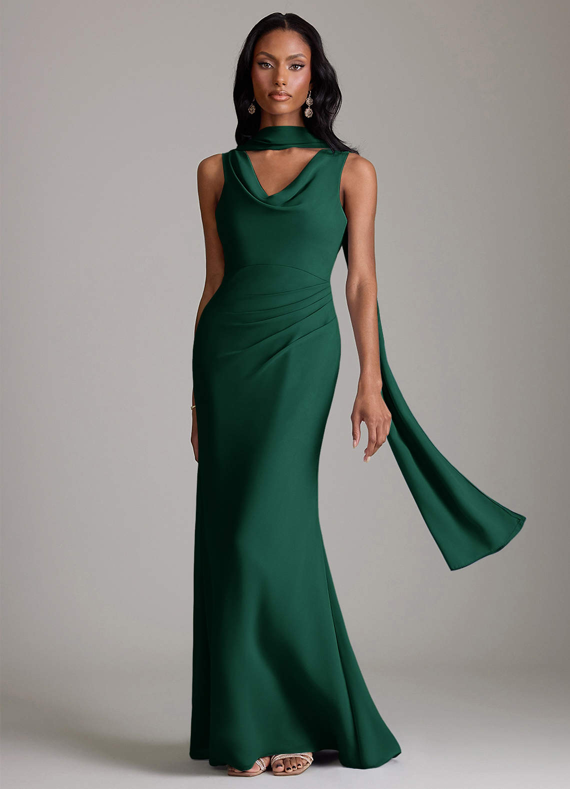 Robe Sirène en Mousseline de soie Plissée émeraude