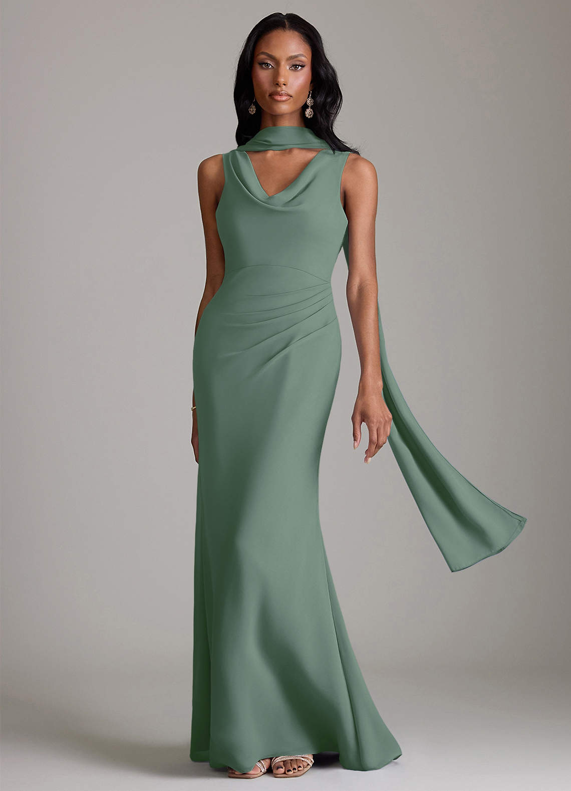 Robe Sirène en Mousseline de soie Plissée Eucalyptus